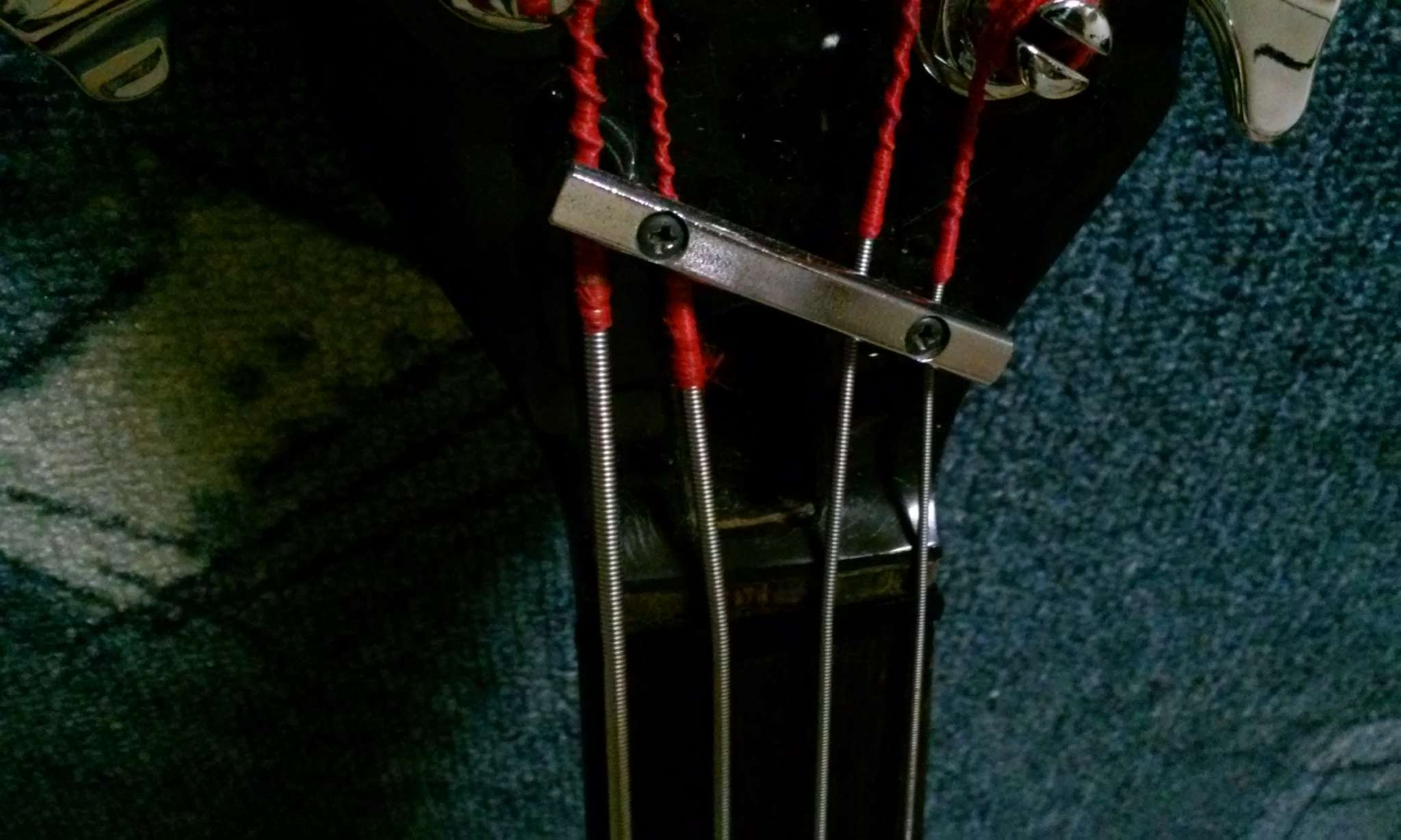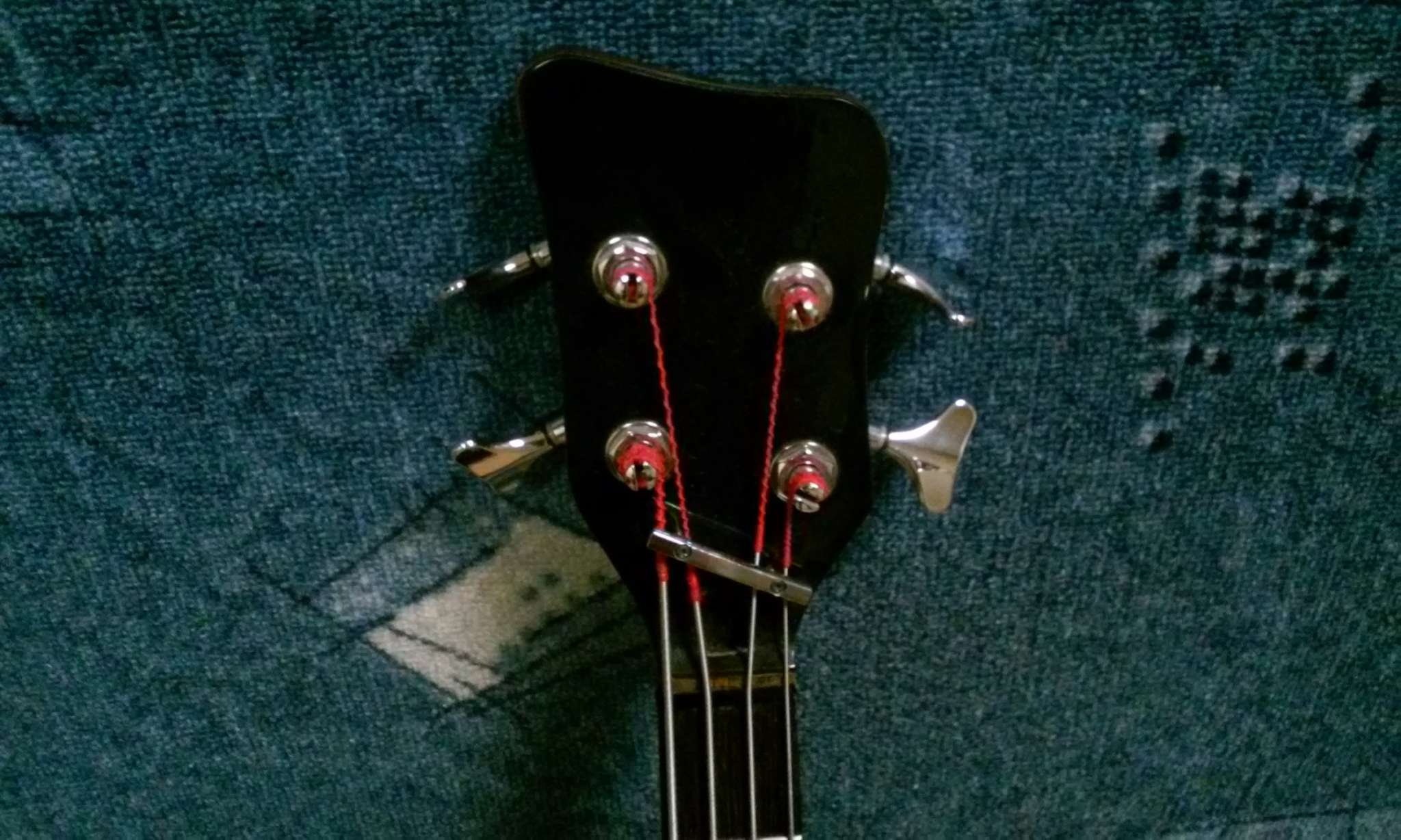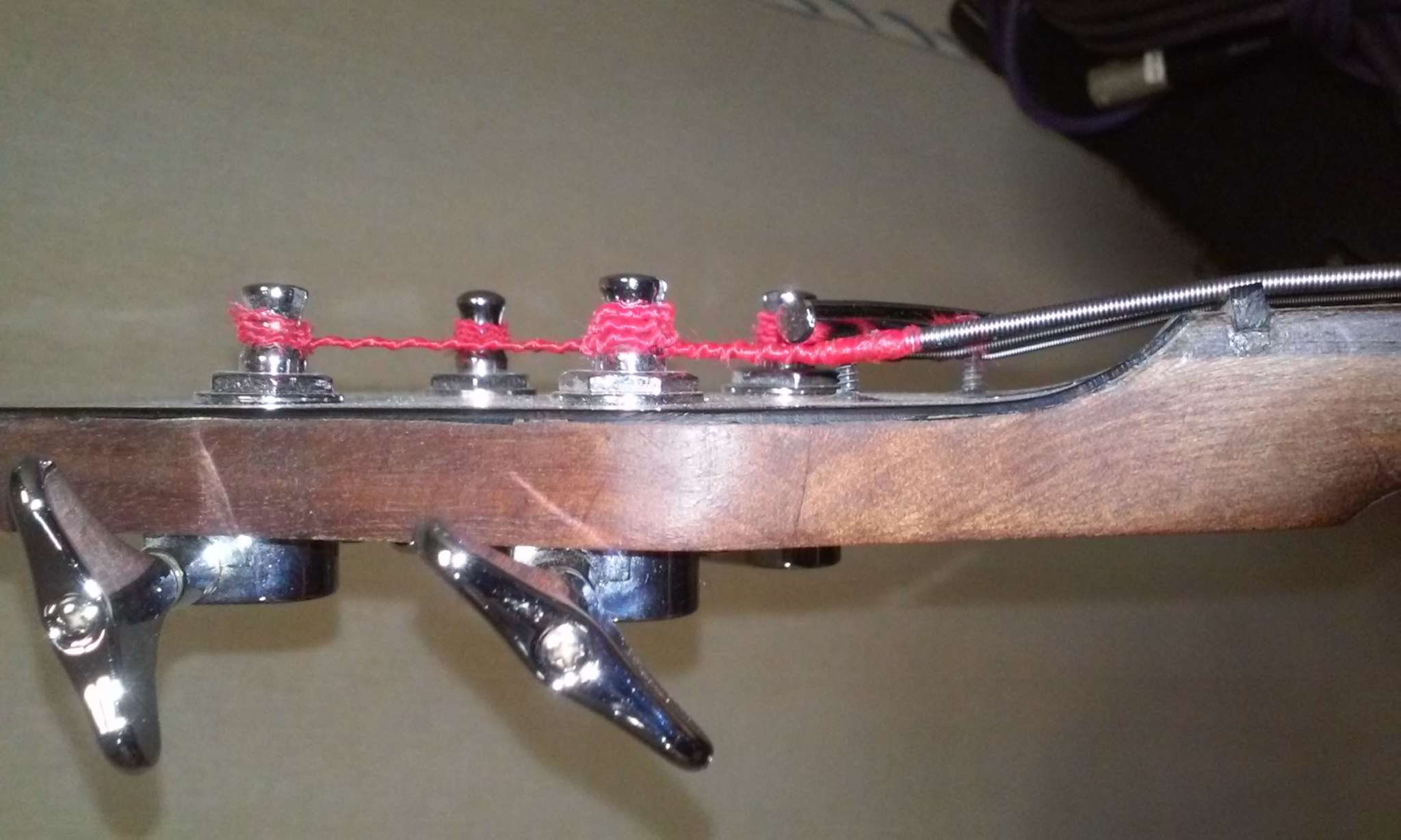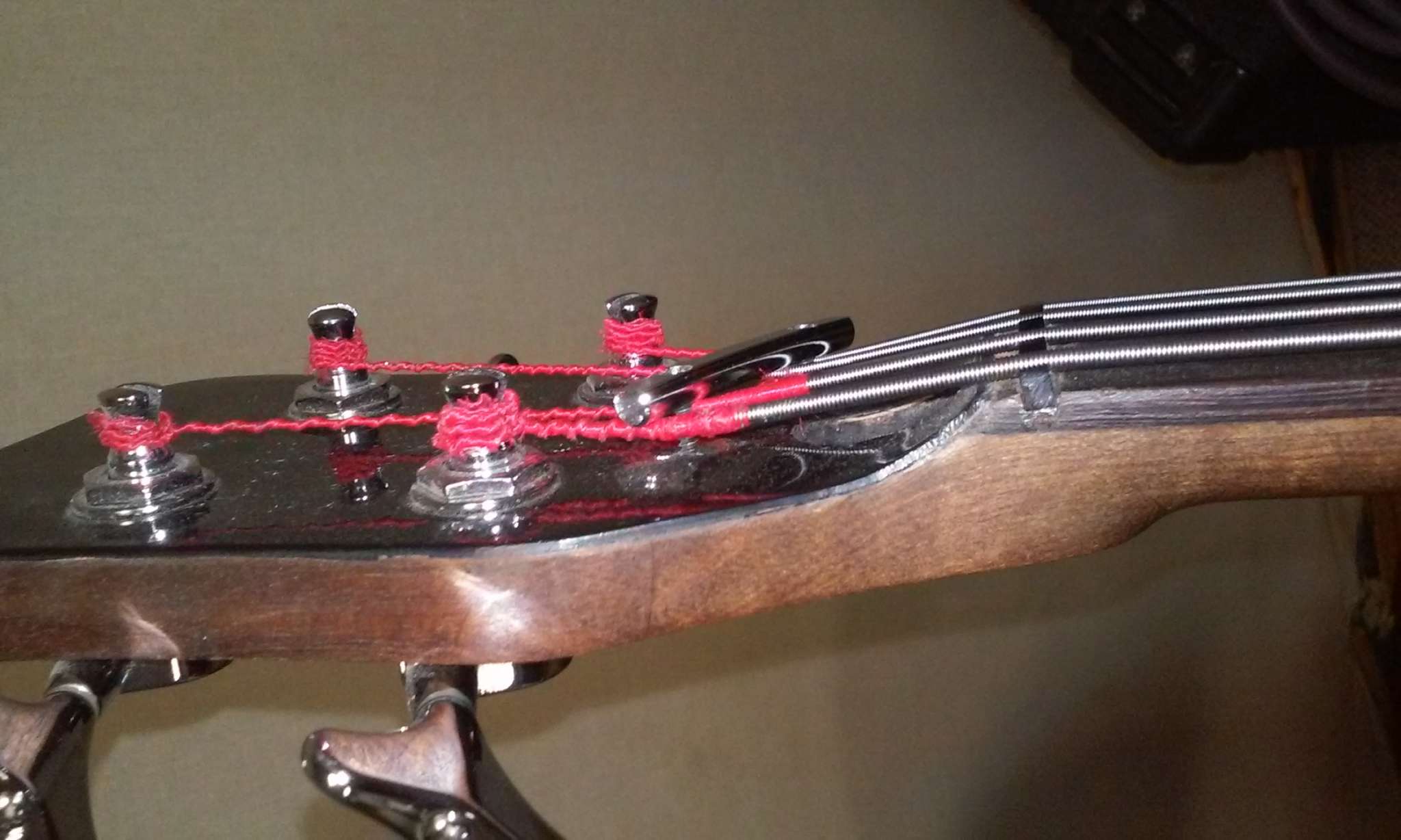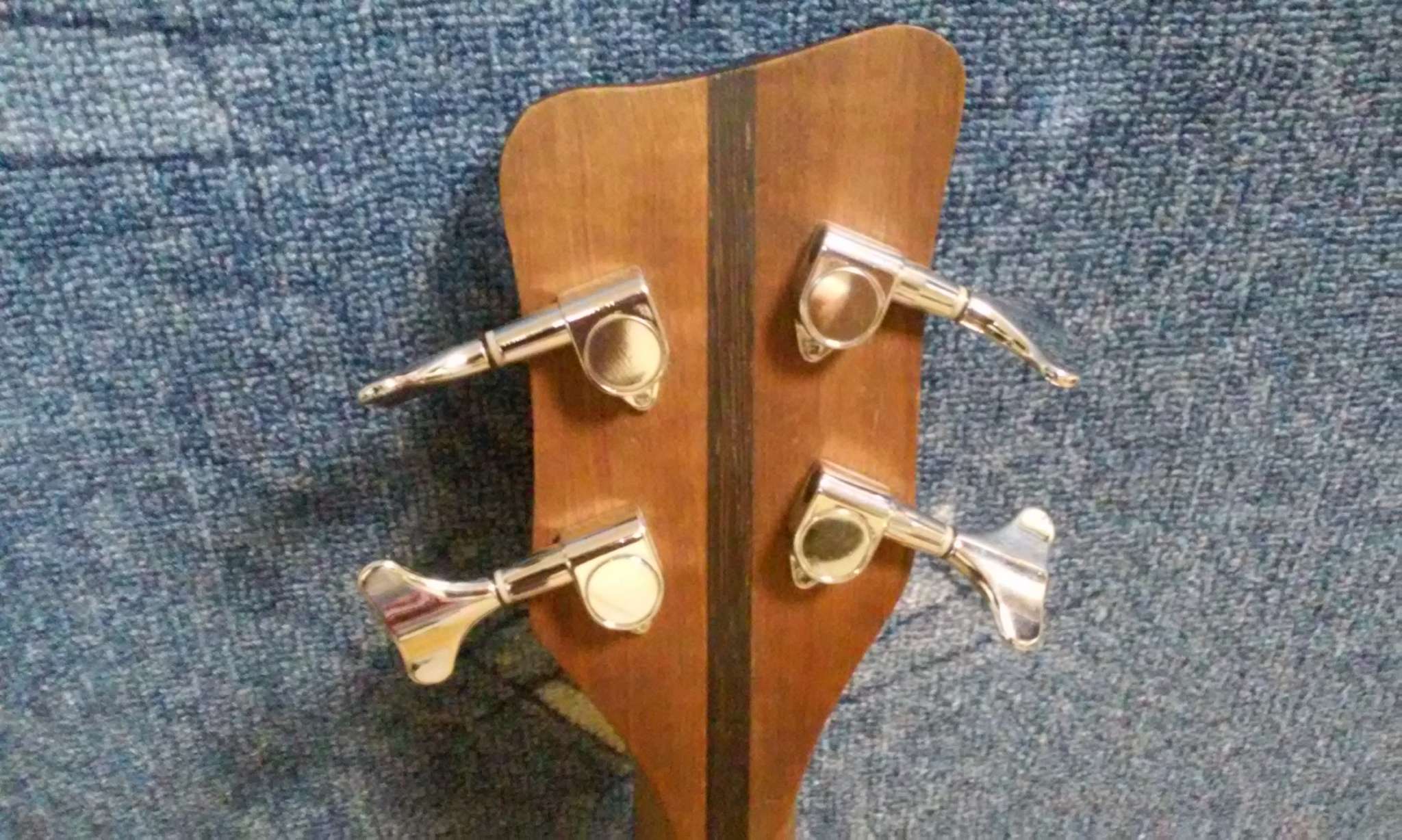 Голова параллельно грифу, поэтому для натяжения струн установлен ретейнер (есть на фото)