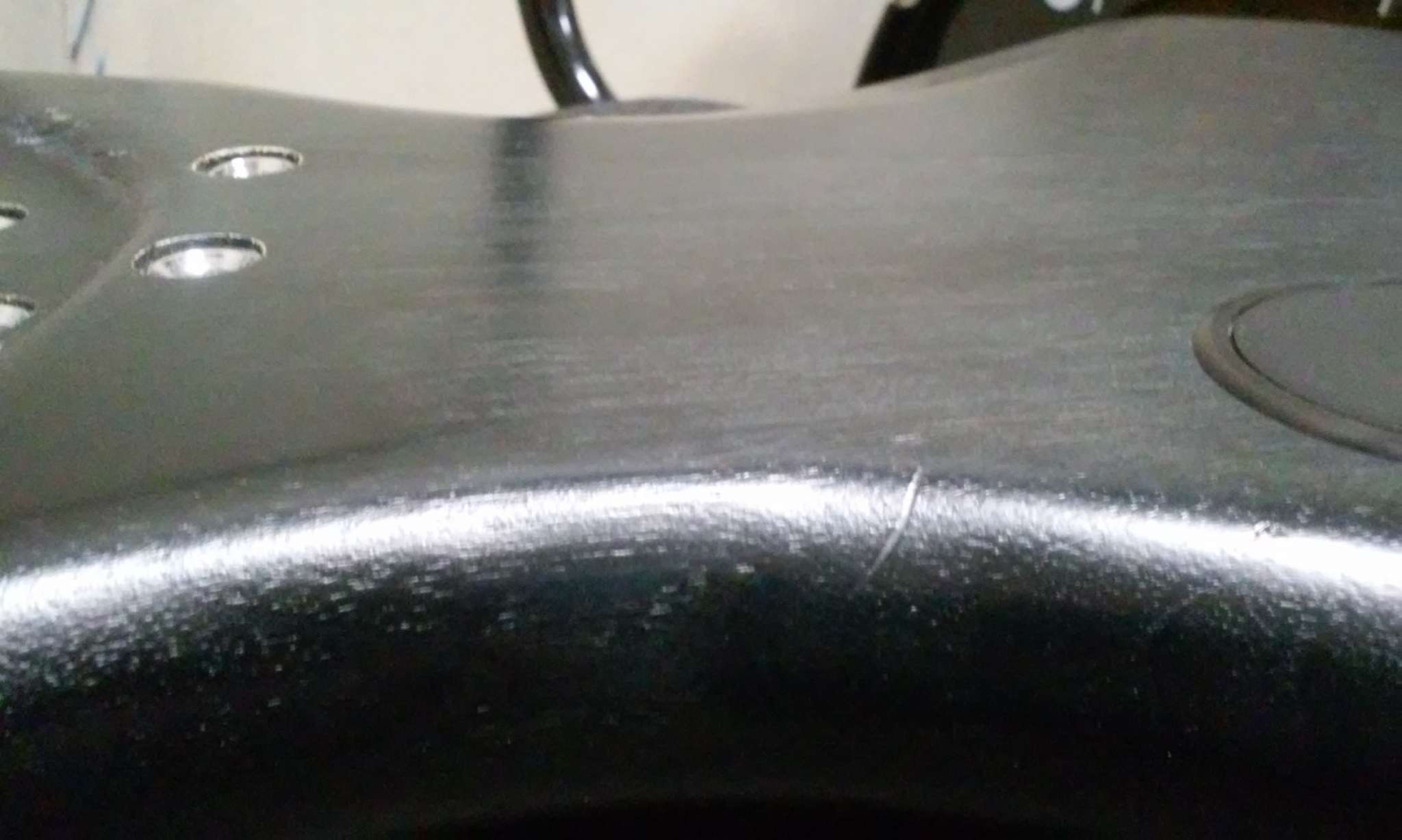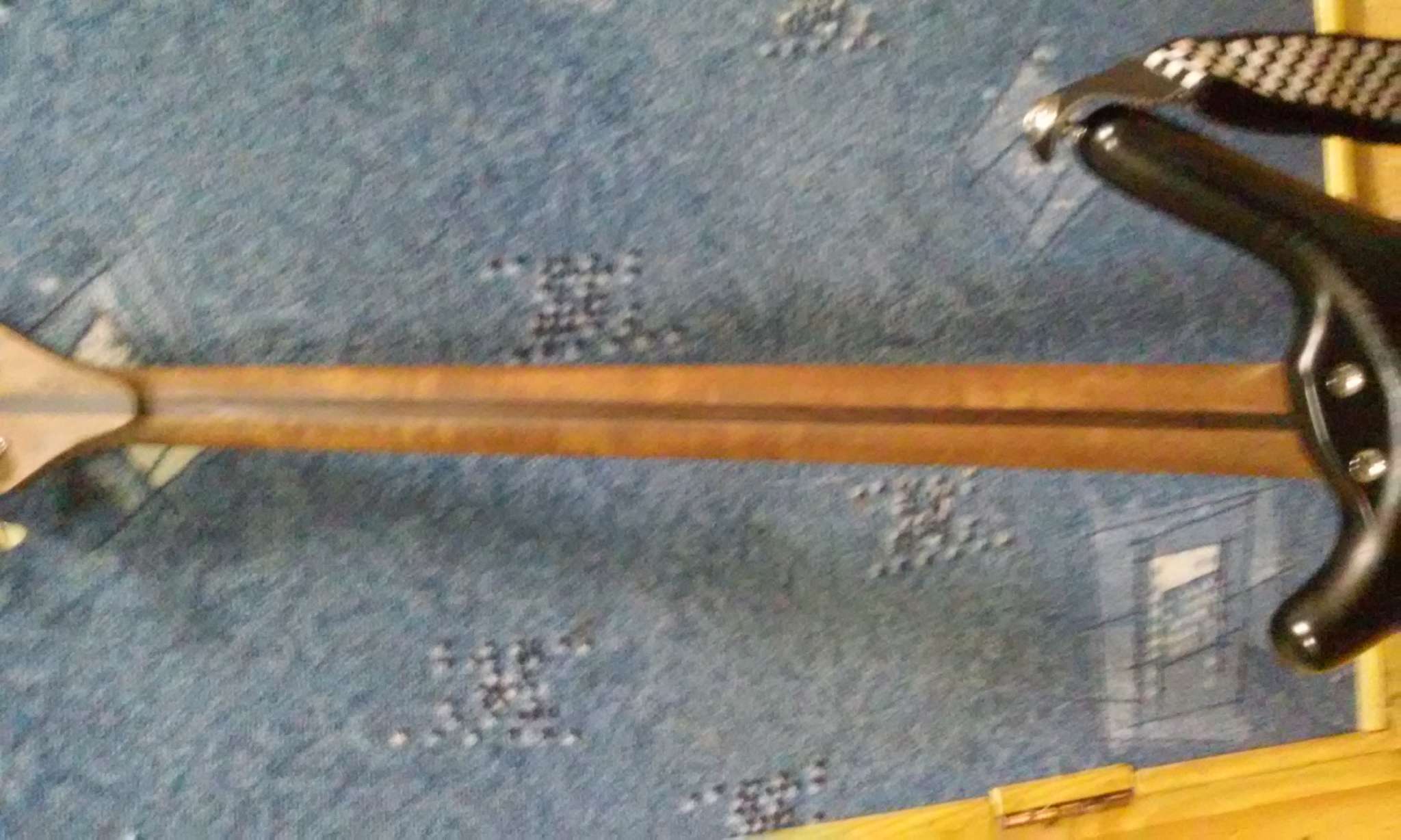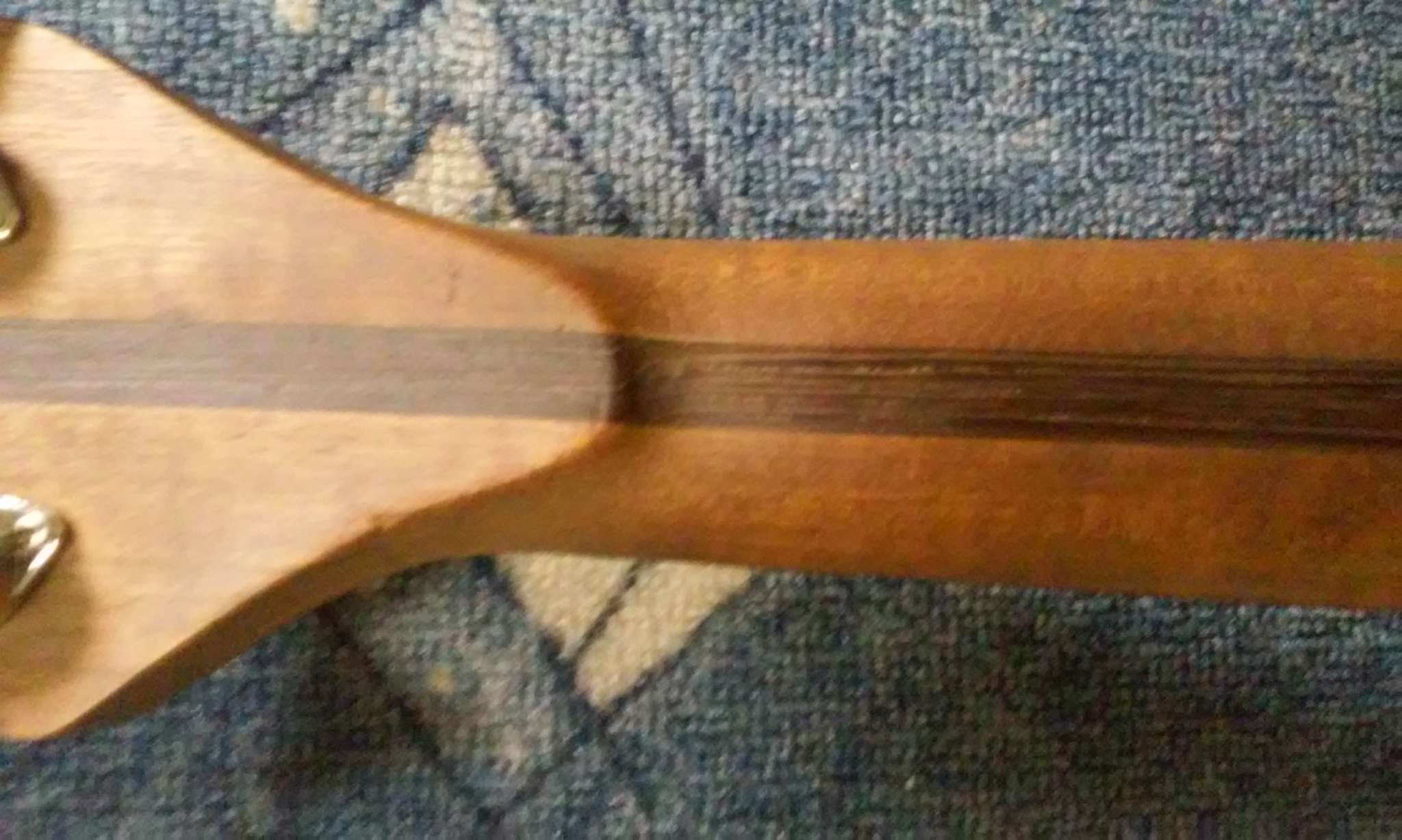 Гриф полностью заменен мастером В. Головановым, теперь из красного дерева с накладкой из палисандра. Не лакированый, сухой на ощупь