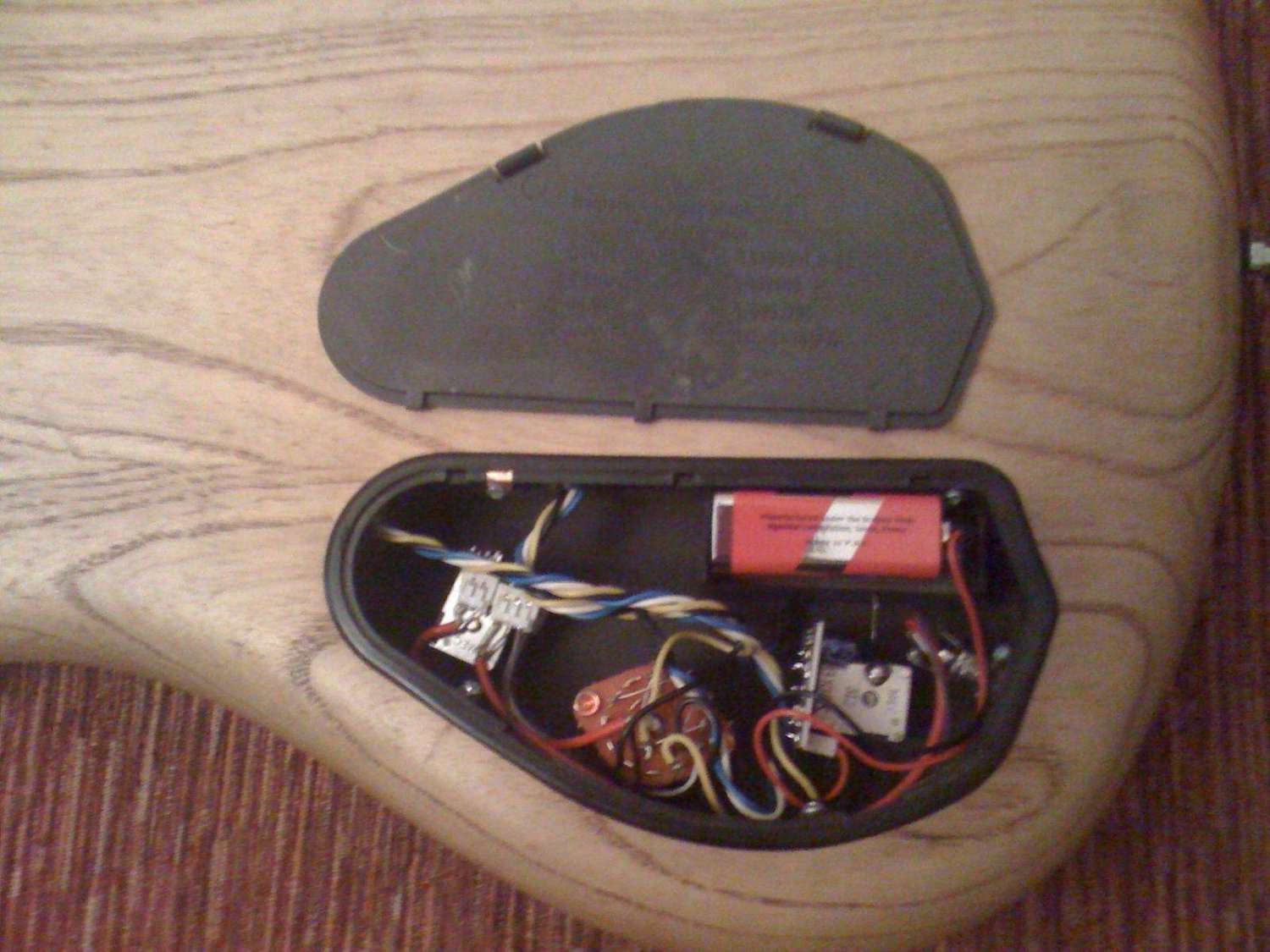 http://www.trakhmann.com/электроника: актив-пассив, целиком заменена с заводской (кроме самих потенциометров) А. Трохиным, вместо ручки tone сделан 6 позиционный переключатель режима работы звукоснимателей, ручки громкости + 2 полосный эквалайзер