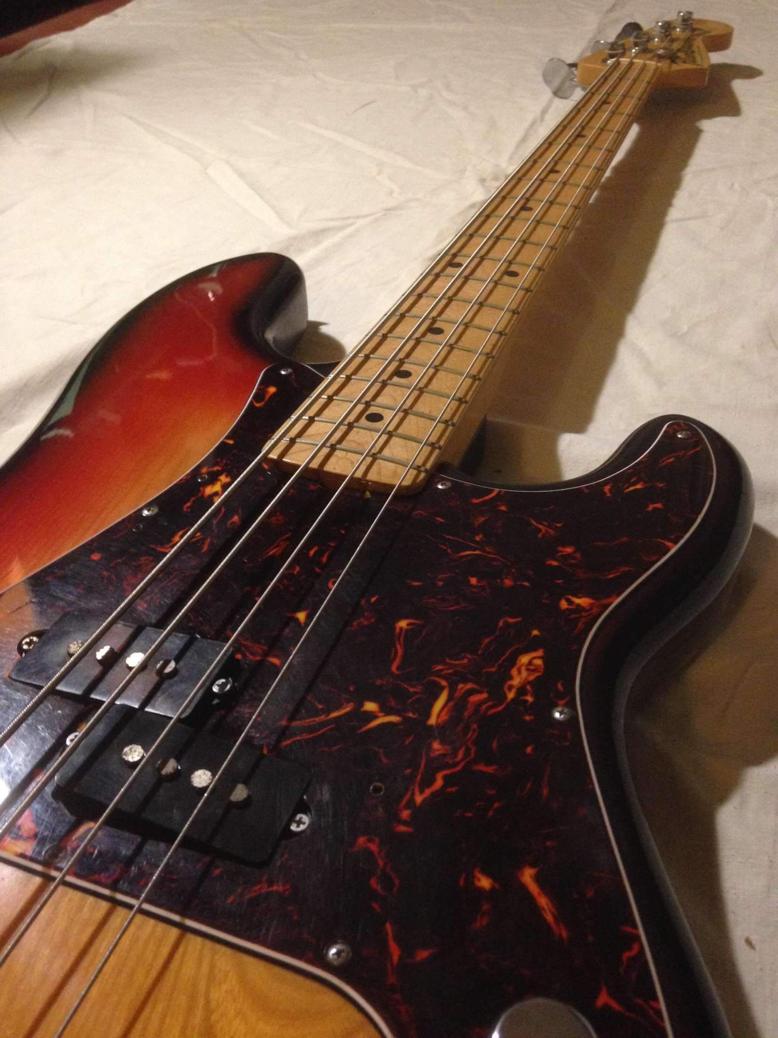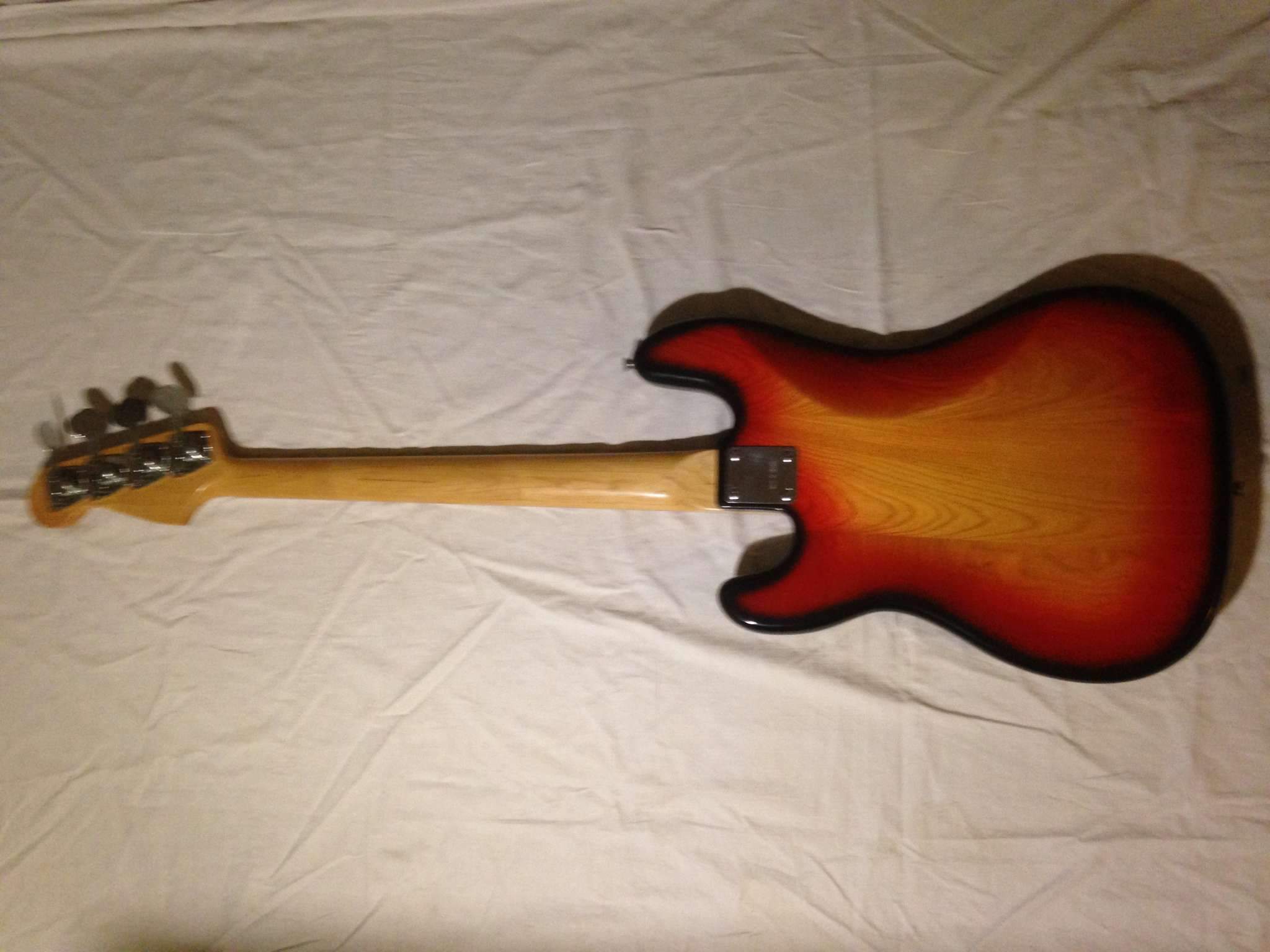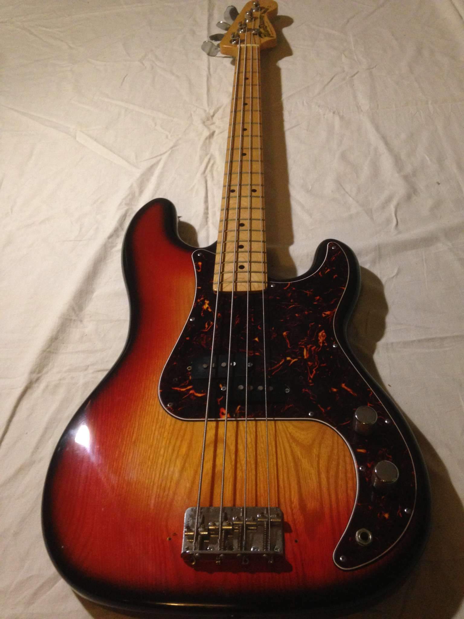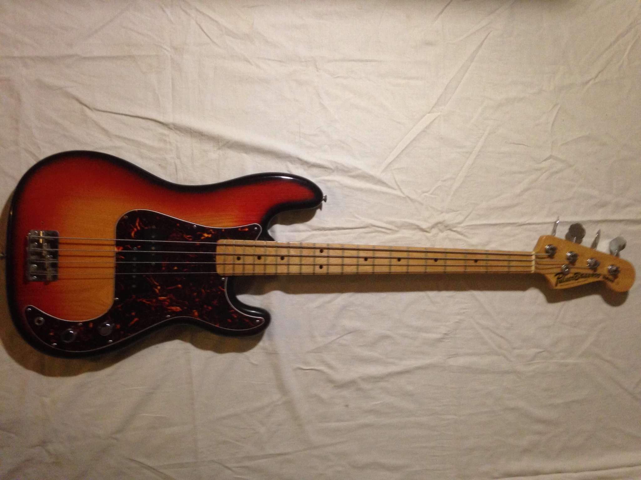 Точная копия Фендер пресижн бас прямиком из 70х годов.Мощный выхлоп как и положено настоящему пресу.Бас сохранился практически в идеальном состоянии до наших дней.