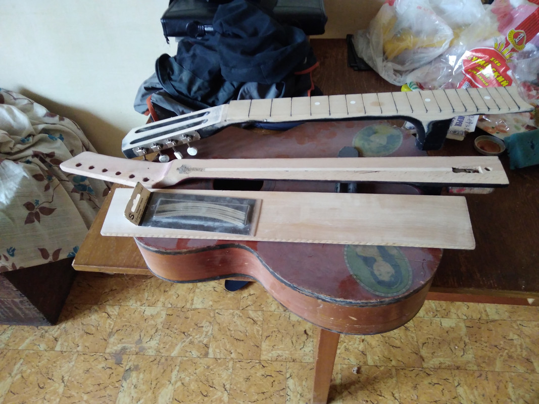 Руки не доходят доделать, а выкидывать рука не поднимется. У обоих грифов пласть под лады выровнена. Накладка из бука, сухая, надо доводить до идеала. Корпус гитары от того же грифа который с колками. По ценнику за всё хочу 1500 можно и поторговаться) пересыл за ваш счёт. Гриф от урала доведён до ума, анкер переделал, функцию свою выполняет. Осталось наклеить накладку. Лады белорусские синтомс 2,5мм из нейзильбера. Пишите ваши предложения. Отправлю любой тк. Находится всё в Миассе Челябинской области