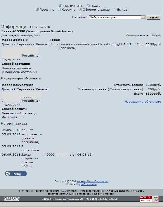 Пишу для всех кто в форумеЕсли Дмитрий Желнов подтвердит свои слова и купит два новых, в упаковке динамика Celestion Eight 15 в магазине Ярасов и покажет мне их, а так же настоящий чек из магазина Ярасов, где два динамика продали ему по 1100 рублей