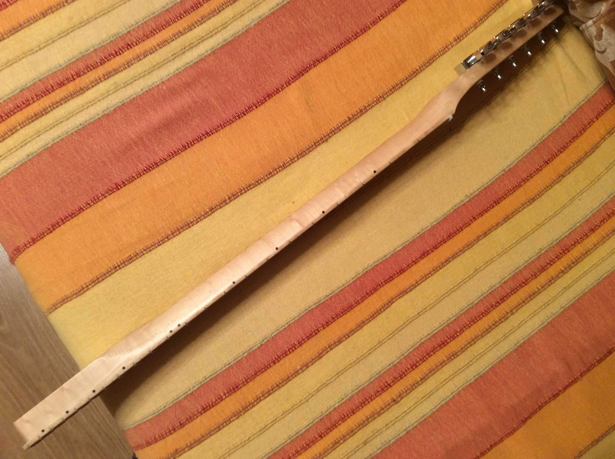 http://www.mightymite.com/mm2914-p-71.htmlШирина порожка 41.5 мм, ширина пятки 55мм. Толщина грифа на 1-м ладу 21мм, на 12-м 23мм. Профиль - С. Материал грифа и накладки - клен "птичий глаз". Анкер работает. Гриф ровный. Укомплектован колками Fender. Цена этого грифа без колков 237.13 USD. Я продам за 10000 рублей. Пересыл. Покупался под проект, но карман на полученном мной корпусе оказался шире и туда встал другой гриф. Пишите в личку, звоните 89174097857