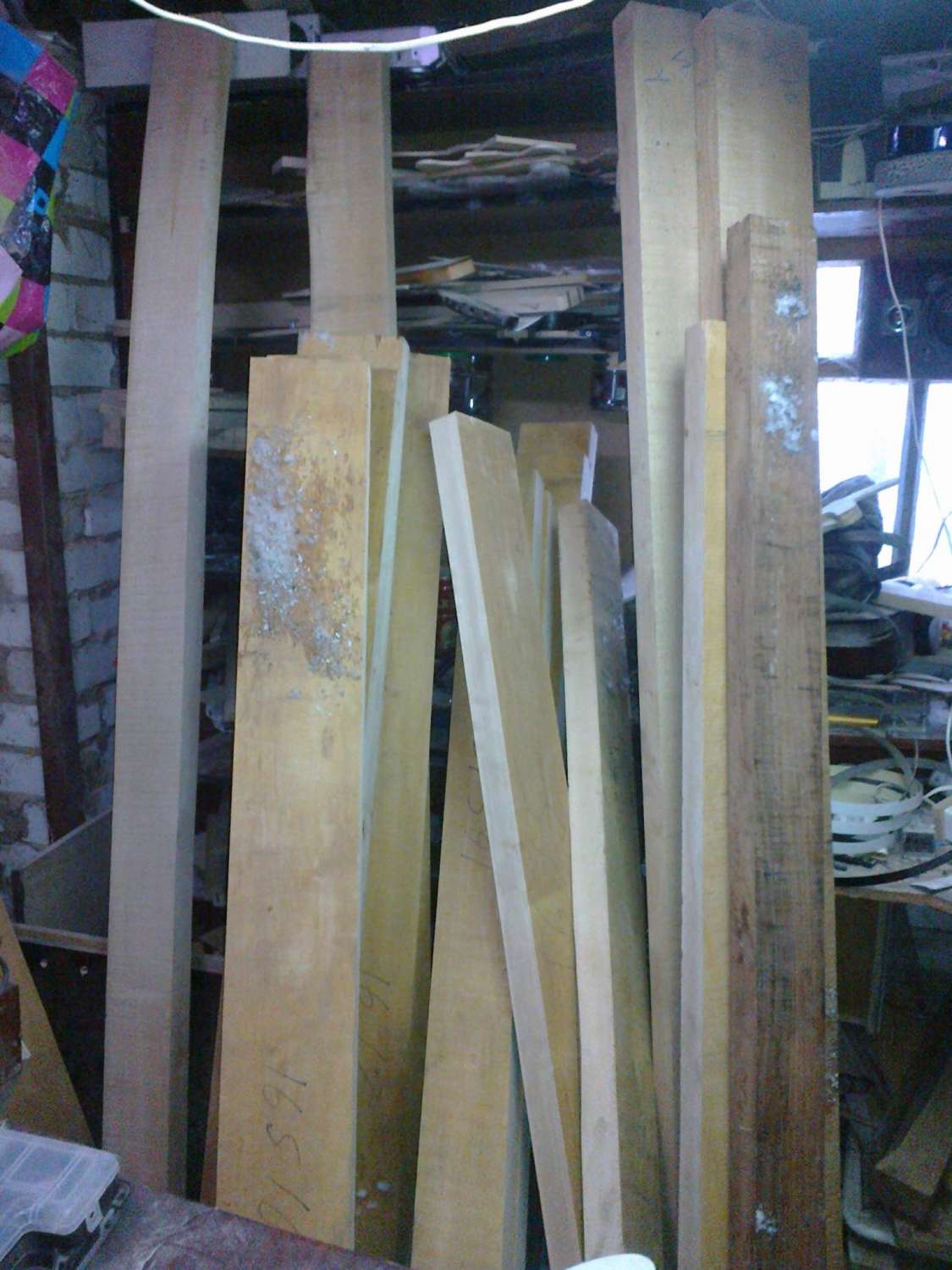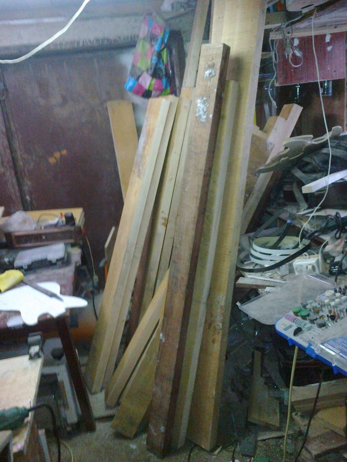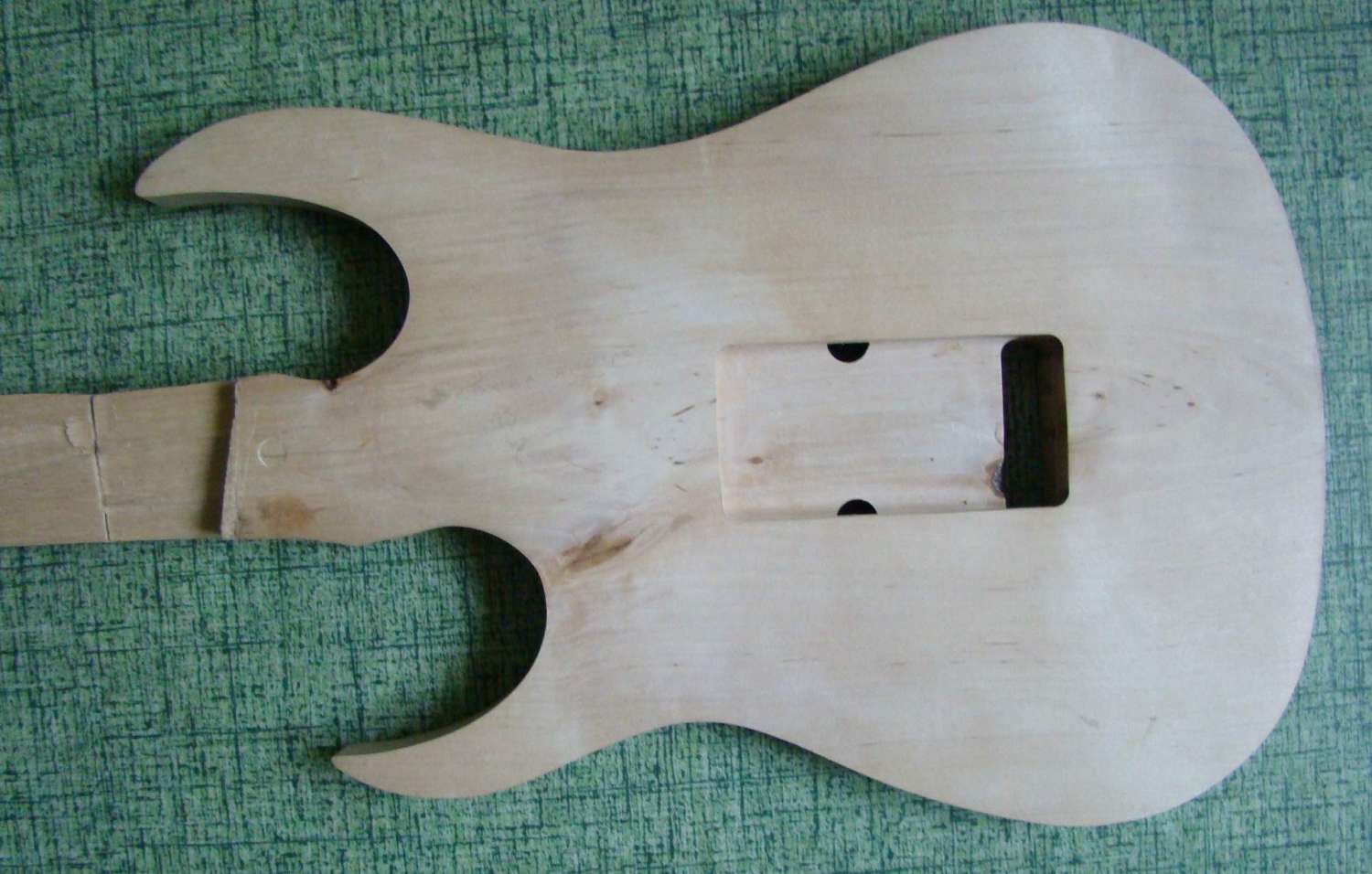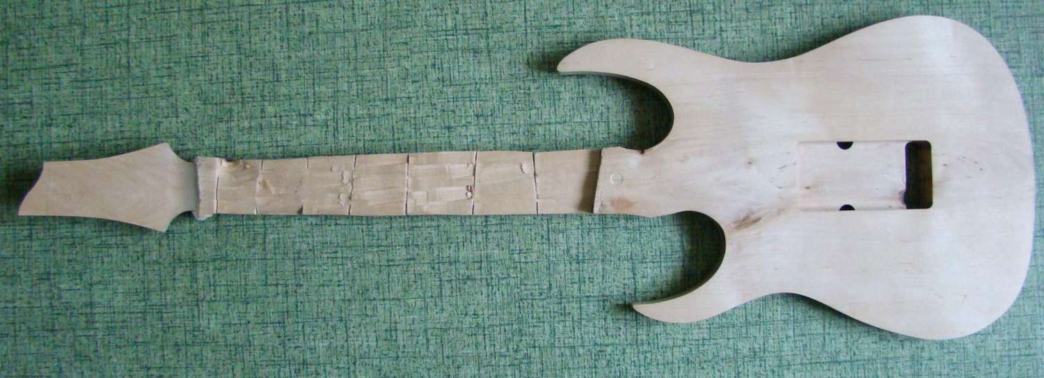 я вот тут порылся у себя в закромах - вот ещё что нарыл - однокусковая заготовка из русского гондураса. строилась под мензуру 670. на грифе у головы остатки сучка, но при обработке они уйдут. на голове есть совсем небольшая доклеечка - не хватало толщины доски.на тушке у нижнего рога есть сучочек, но он плотный не выпадной - оставлен специально , чтобы подчеркнуть атаку со стороны дискантов. делалось именно под эту машинку, другая может не подойти. ножи правда придётся подточить.