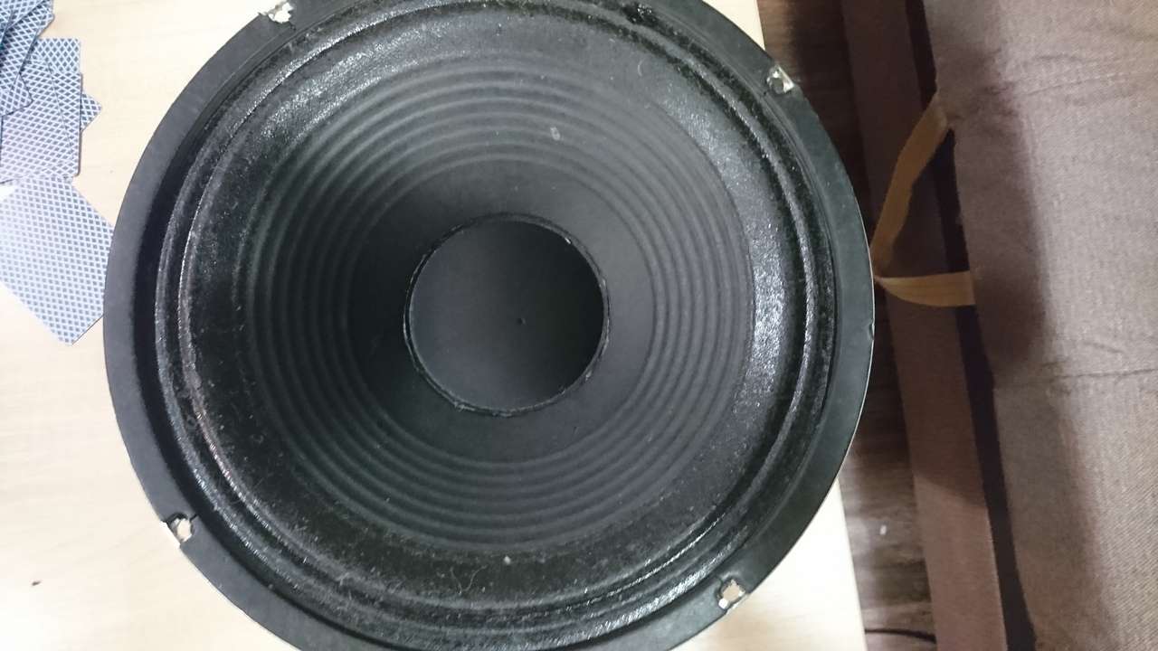 Немножко в пыли, недавно кошка слегка проткнула когтём подвес, аккуратно заклеил, на звук и работу не влияет.