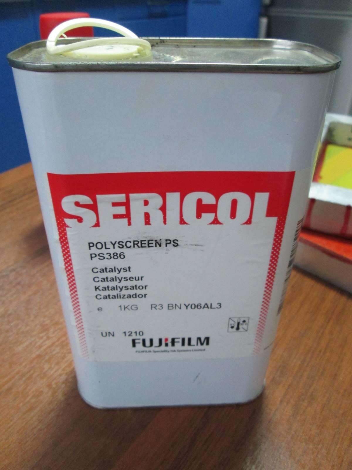 Краска чёрная Sericol Polyscreen PS001 - 1 кг, отвердитель PS386 - 1 кг, растворитель ZE570 - 250 мл.