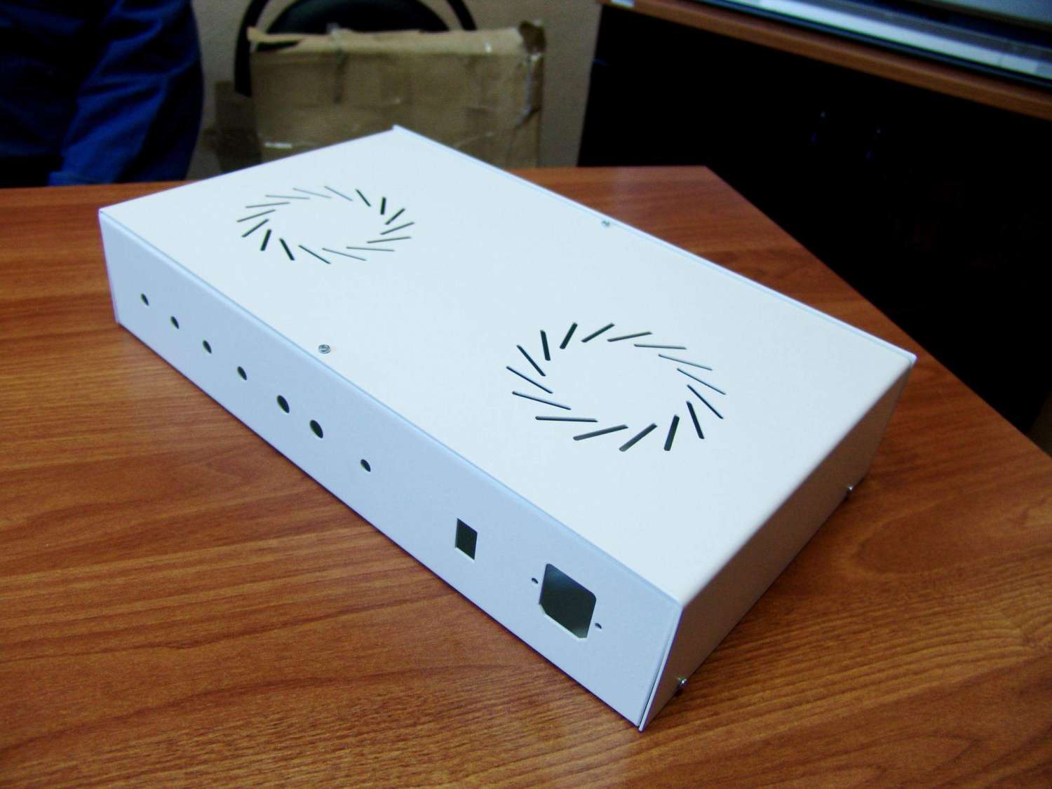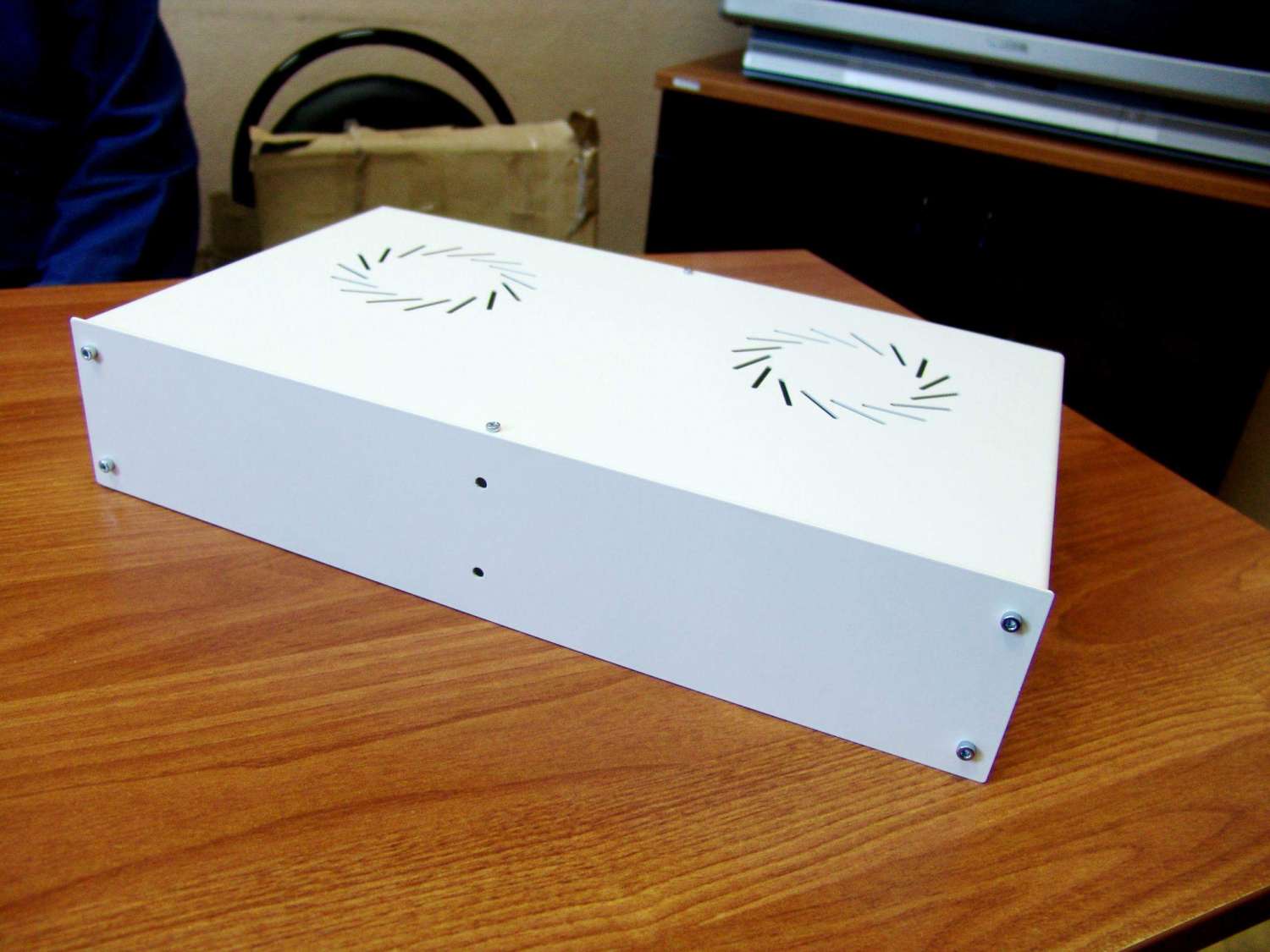 сталь 1.5 мм, покраска порошок , все чики пики, дырки на морде под 5 мм светодиод, сзади под два больших джека, 4 колоночных клемы ,клавишный выключатель и сетевую колодку с предохранителем. цена 1800 ,пересылка автотрейдинг по РФ. есть 4 штуки,кто берет все отдаю по 1500.