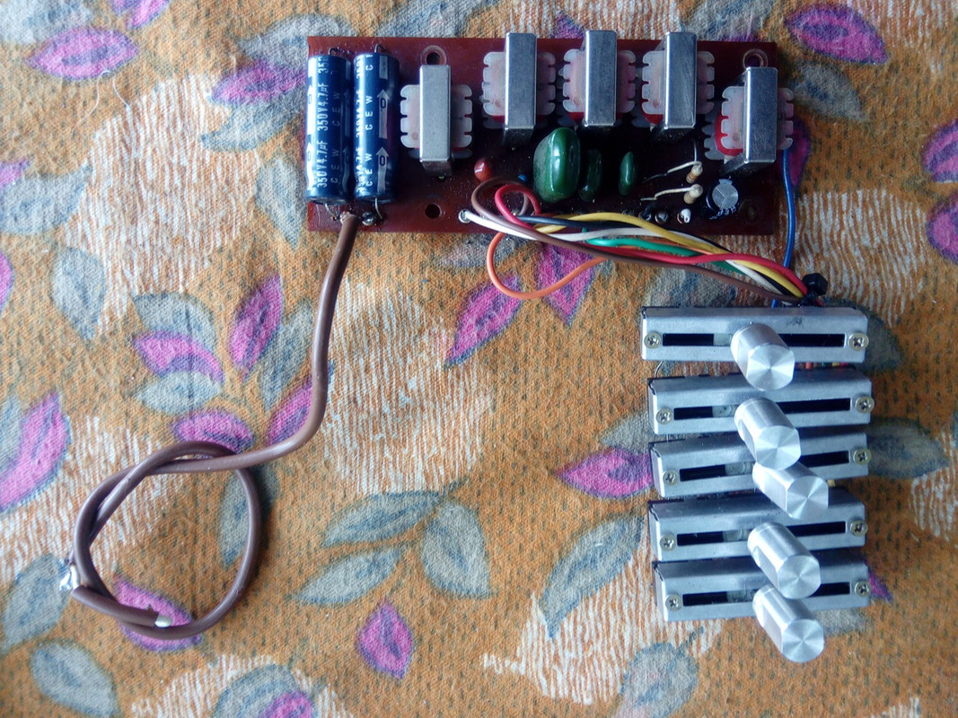 Графический эквалайзер (5 полос) - 80 Гц; 240 Гц; 750 Гц; 2,2 кГц; 6,6 кГц - 5 переменников с платой фильтров для лампового каскада.