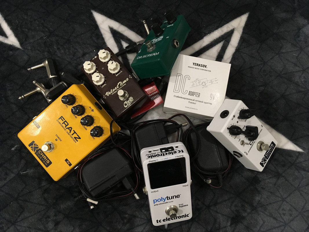 Все педали в отличном состоянии домашнего использования: PolyTune, FRATZ и CSD как новые. У Velvet Time есть царапина на задней крышке (срезал липучку). Dr.Scream брал с рук, косметическое состояние на 4+.
