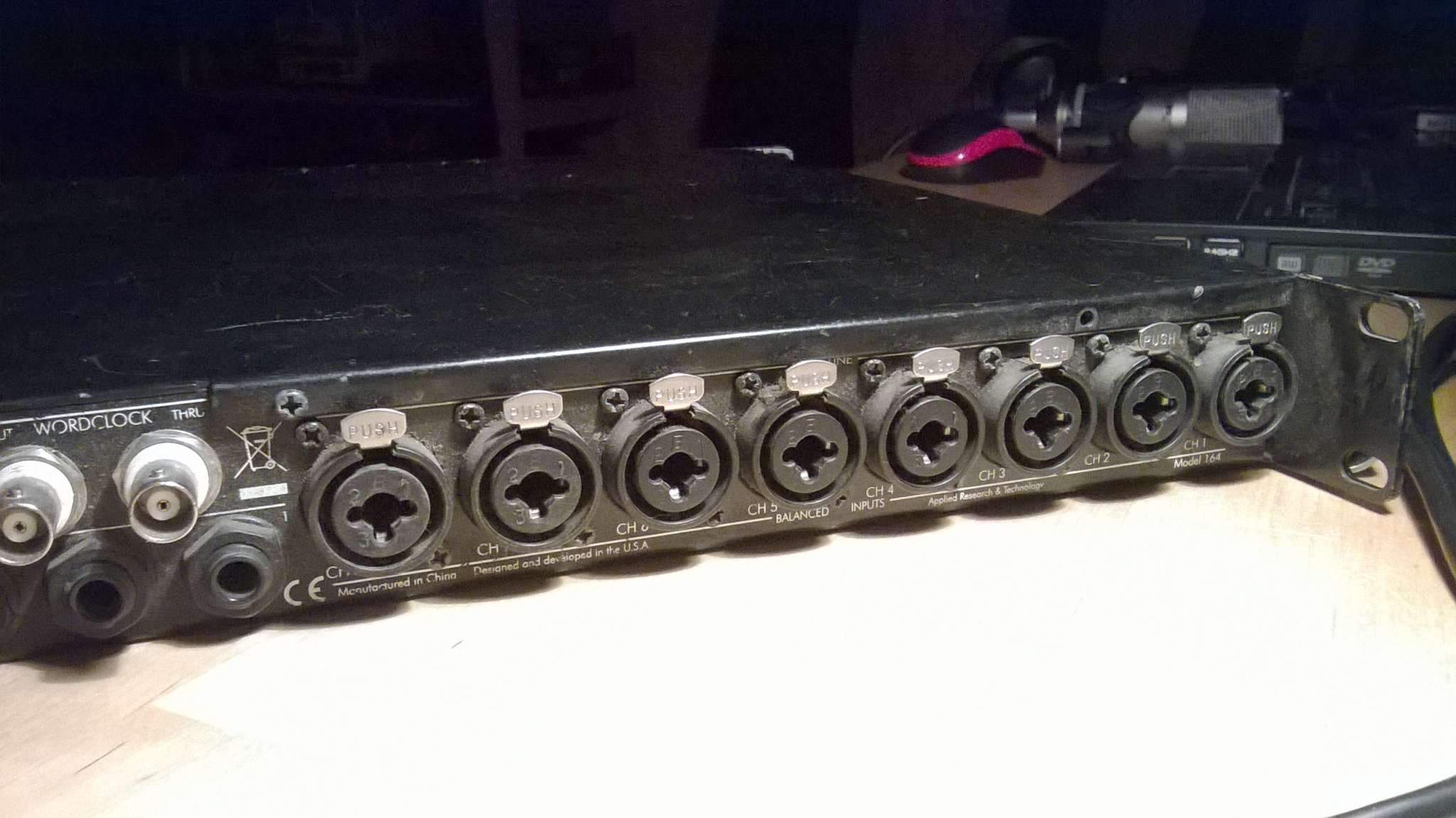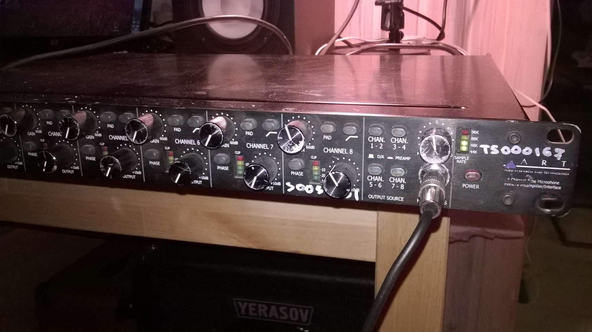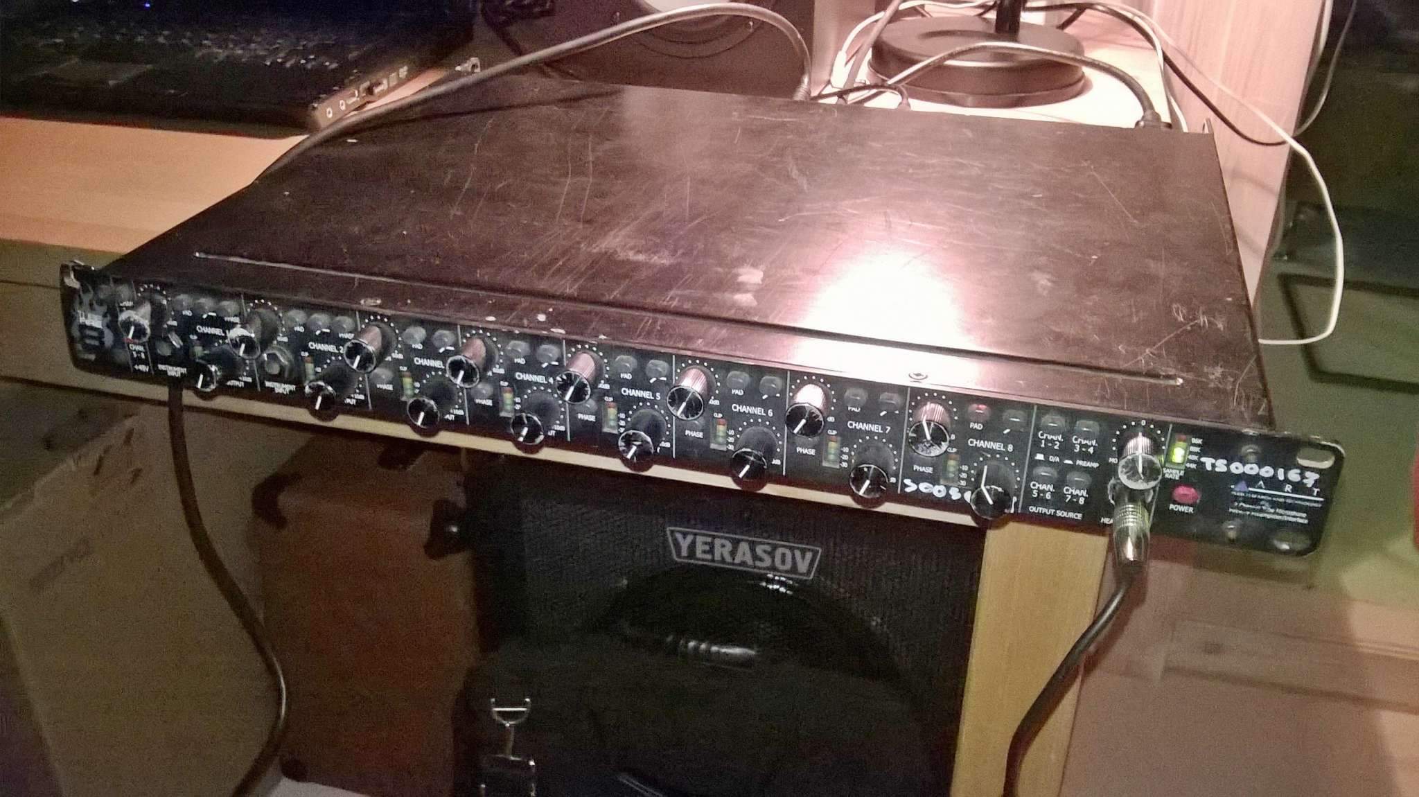 Карта полностью рабочая, несмотря на внешний пошарпаный вид! Погнуто одно ухо крепления к рэковой стойке, немного стёрты регуляторы гейна и громкости на первых трёх каналах, но на работоспособности не сказывается!
