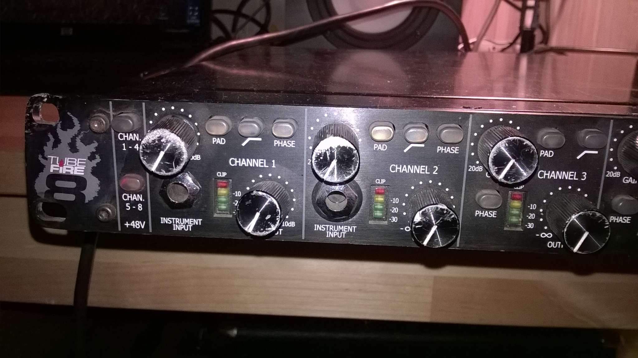 Восемь ламповых микрофонных предусилителей с комбинированными входами XLR-Jack. Можно записывать барабаны, или репетицию группы по каналам - в общем, что угодно!