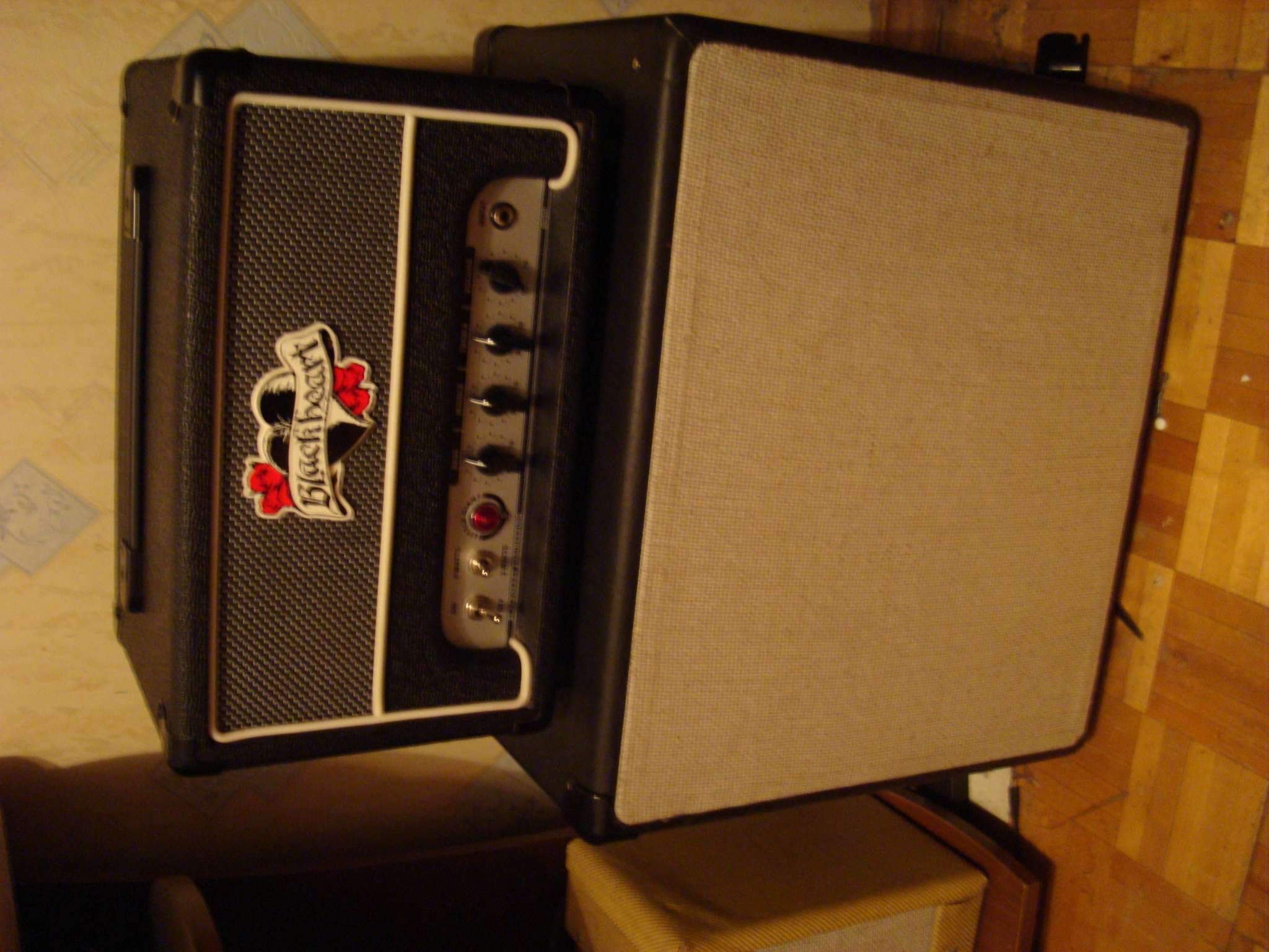Гитарный ламповый однотактный усилитель (Голова) класса А, BLACKHEART BH5H Little Giant Head. Трехполосный эквалайзер, ручка громкости, переключатель Пентод-триод (с понижением мощности с 5 до 3 Ватт). Выходы 4, 8 and 16 ohm, в преампе лампа 12AX7 фирмы JJ, в оконечнике EL84 TESLA. Документы в комплекте. Ахренительный усилитель для дома (и небольших репетиций с барабанщиком который не лупит), обзор тут: