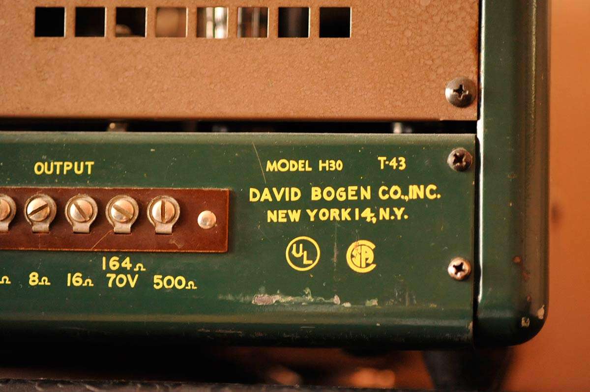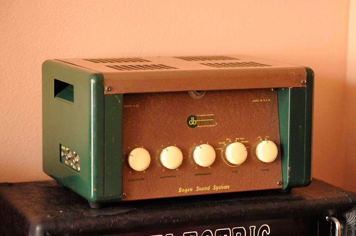 "Bogen amps were made in New York. To my knowledge, they never made any amps solely intended for guitar, but just like old Masco PA heads, these Bogen all-tube PA heads are favorites for guitar amp conversions. They are prized by blues guitarists and harp players for their thick, honking blues overdrive when cranked into overdrive, and their good cleans make a great platform for sculpting a sound with pedals."