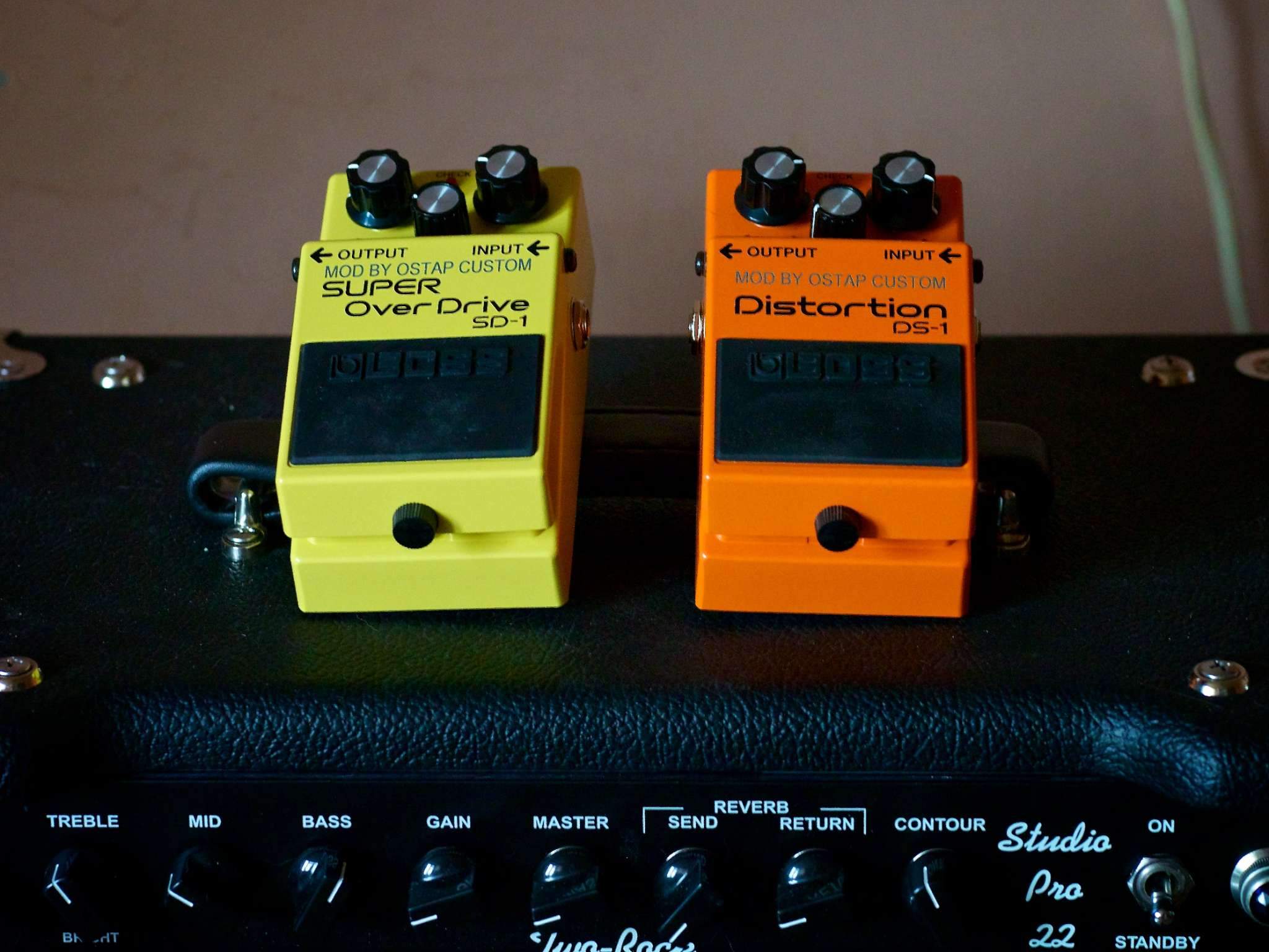 Два мода от великого и ужасного Кирилла Остапова (Ostap Custom). Педали новые, в коробках. Ничего общего, кроме общего с оригиналом характера и корпуса, с боззом нет. Чистый байпасс, звук открытый, объемный, заполняющий все пространство, никакой лишней компрессии, мусора и плоского жужжания оригинала. Короче говоря, обе педали звучат, как еще один канал лампового усилителя очень высокого класса. Обе выдают весь диапазон от клинбуста до мощного перегруза, вот только характер у перегруза, разумеется, разный. Мод не ограничен простой заменой пары-тройки деталей, как это делают обычно забугорные и наши мастера. Схема собрана практически заново из деталей очень высокого класса. Как говорят люди, которые уже послушали обе педали, "это нечто. с этими педалями нужно уметь играть". Каждая стоит 12 тыр.