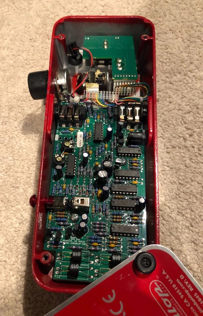 Потенциометр изменения интенсивности эффекта здесь расположен таким образом, что его также можно настраивать ногой.