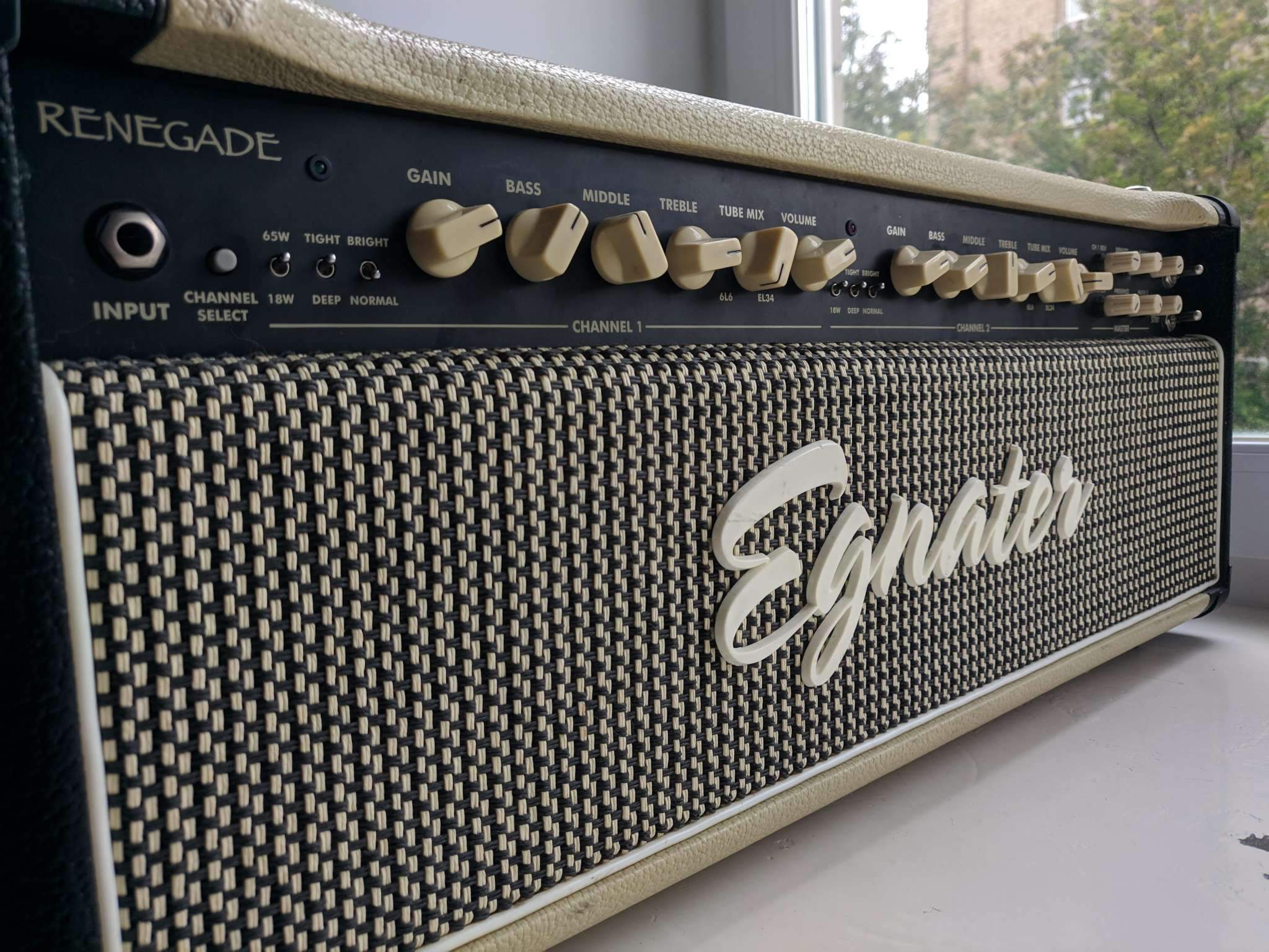 Две пары выходных ламп 6L6/EL34 и возможность свободно их смешивать на любом канале дают большое количество оттенков звучания - от фендеровского округлого и прозрачного звука на чистом до маршалловского зерна на перегрузе.