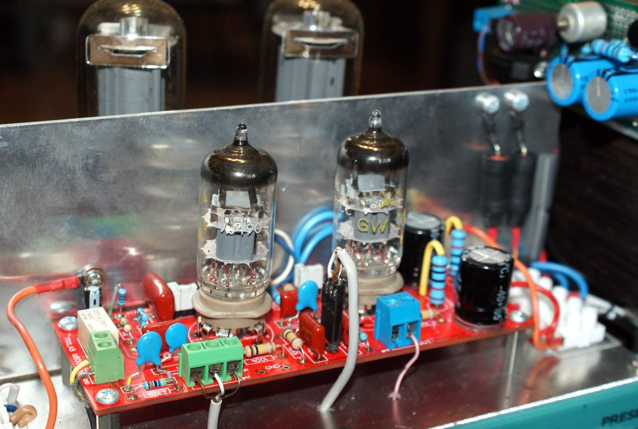 Ламповый гитарный усилитель HI-GAIN. Преамп выполнен по схеме JCM800 с некоторой модернизацией. Для снижения шумов коммутация CLEAN/DRIVE производится не в коннекторе входа, а при помощи реле, расположенного в непосредственной близости от первой лампы. Перемычками на плате можно переключать накал на разные ноги, что позволяет использовать и 2х12АХ7 и 6Н2П. Выходной 1х6Н2П+2х6П3С (около 40 ватт). Есть петля эффектов. Платы и трансы заводские. По габаритам - как Marshall 20Watt. Цена 24000. Торг.