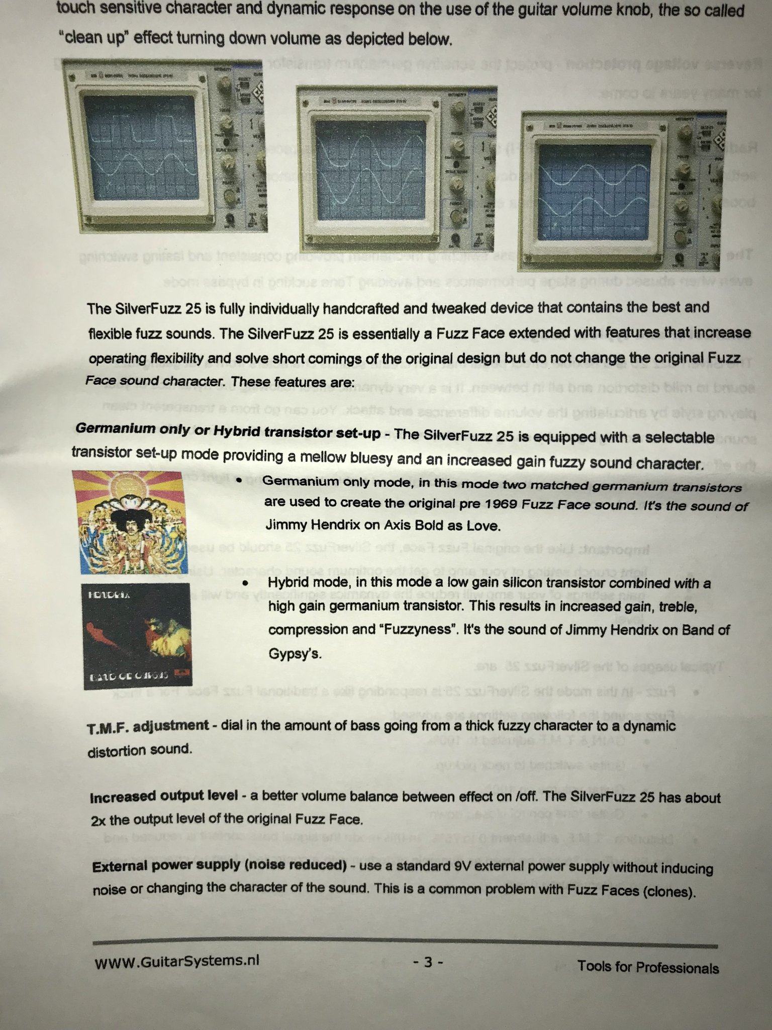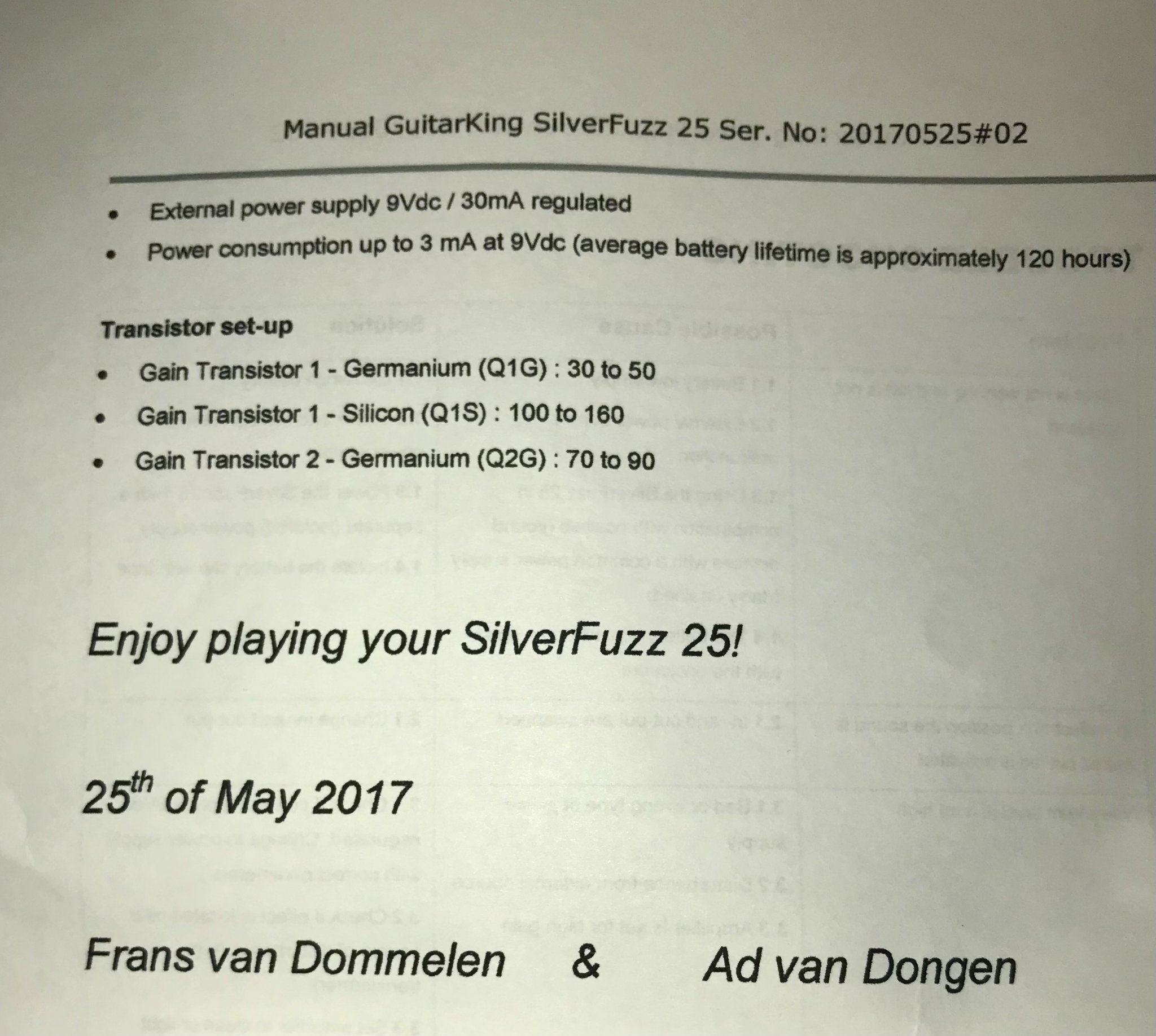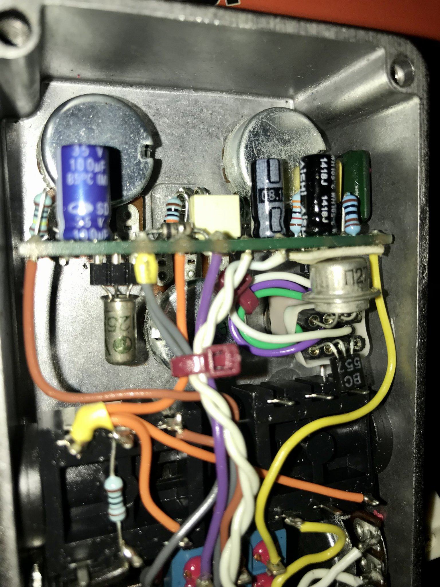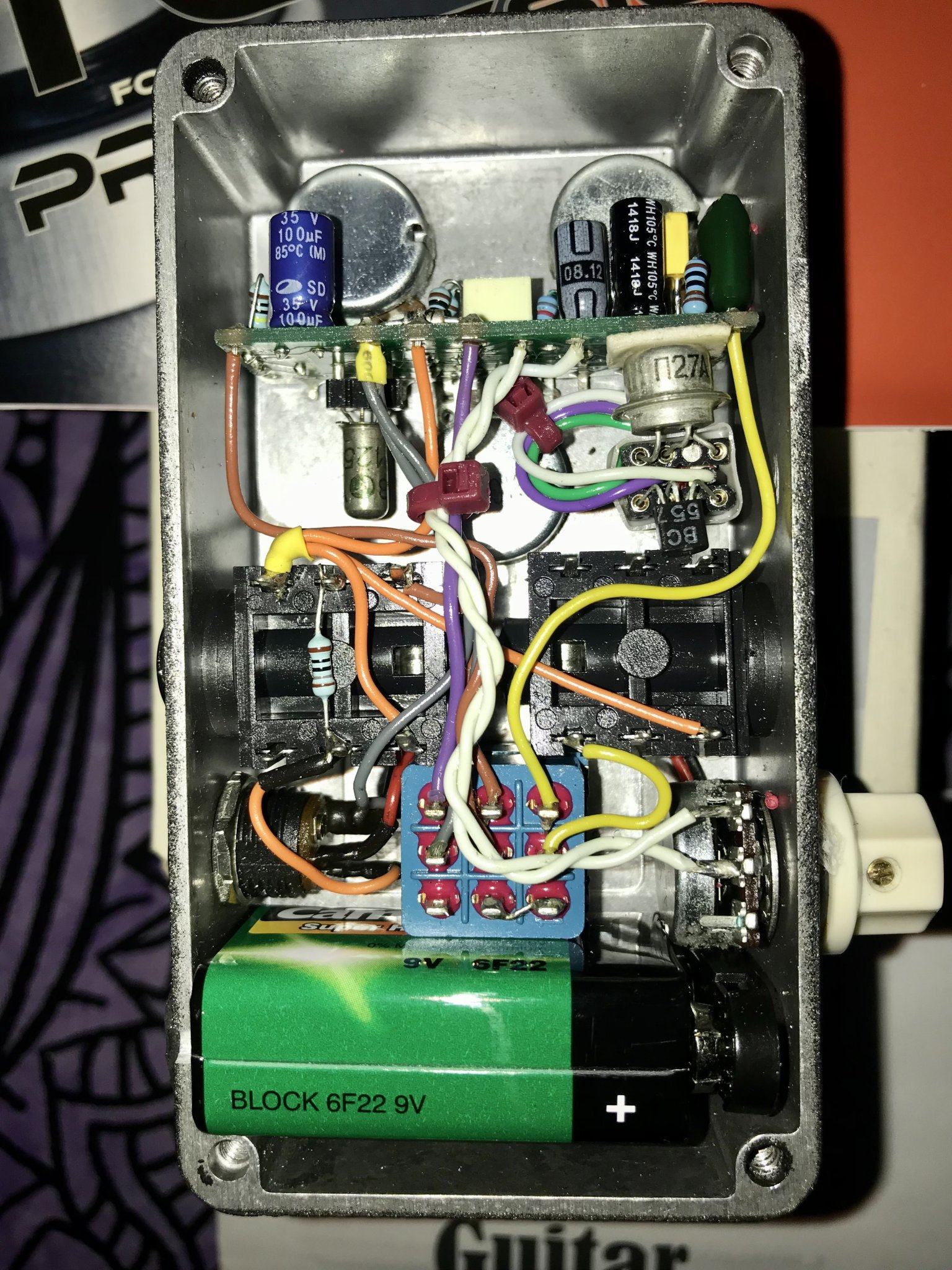 Звучит на уровне новомодного КingТоnе Guitаr mini fuzz, при меньшей стоимости и коллекционной ценности из-за ограниченной серии и недоступности используемых NОS-транзисторов.