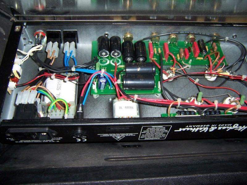 25 watt, 2x 12AX7, 2x EL34, Class A, регулировка output power 100%-80%-50%, подключение 8 или 16 Ohms динамиков.