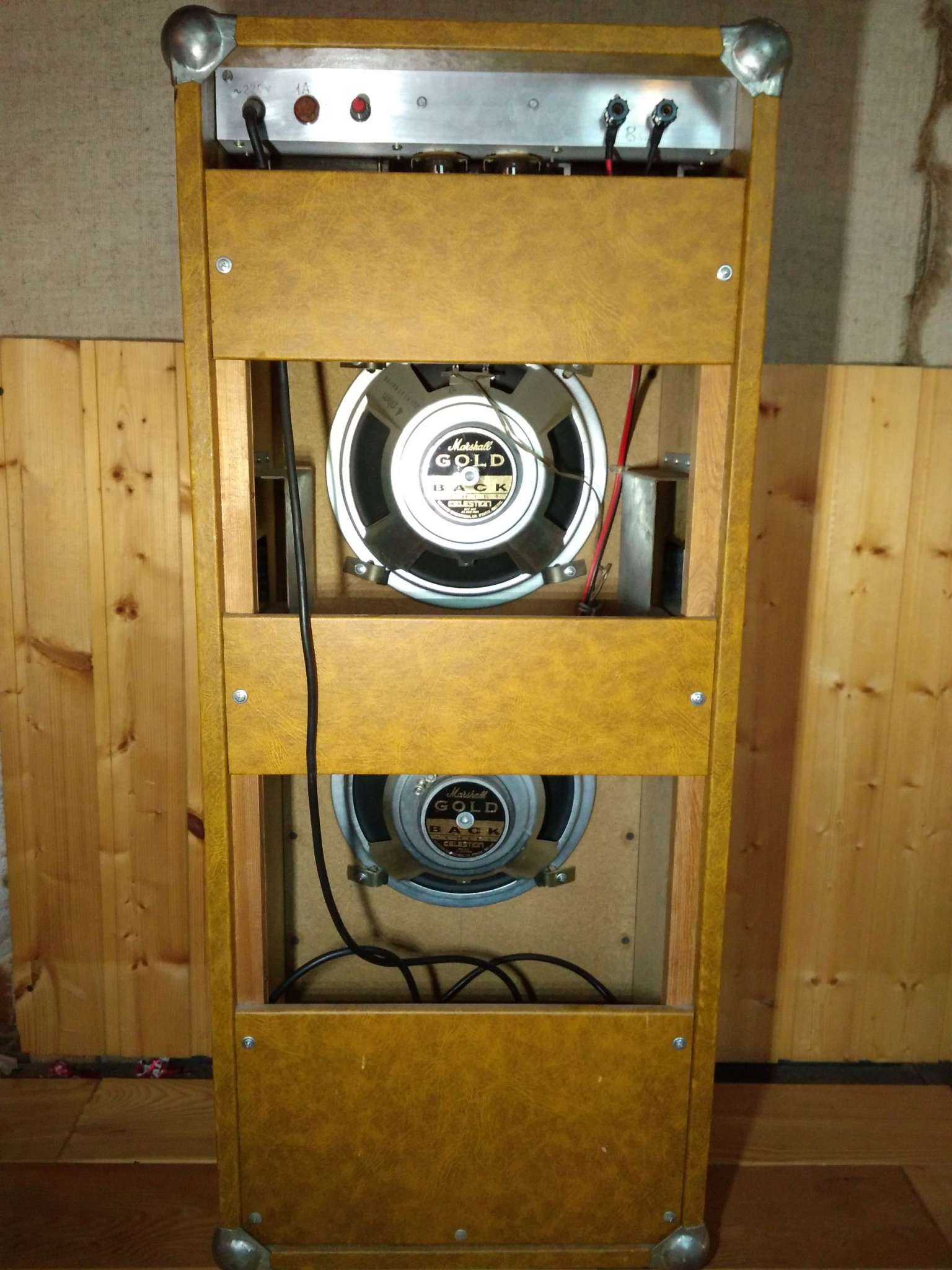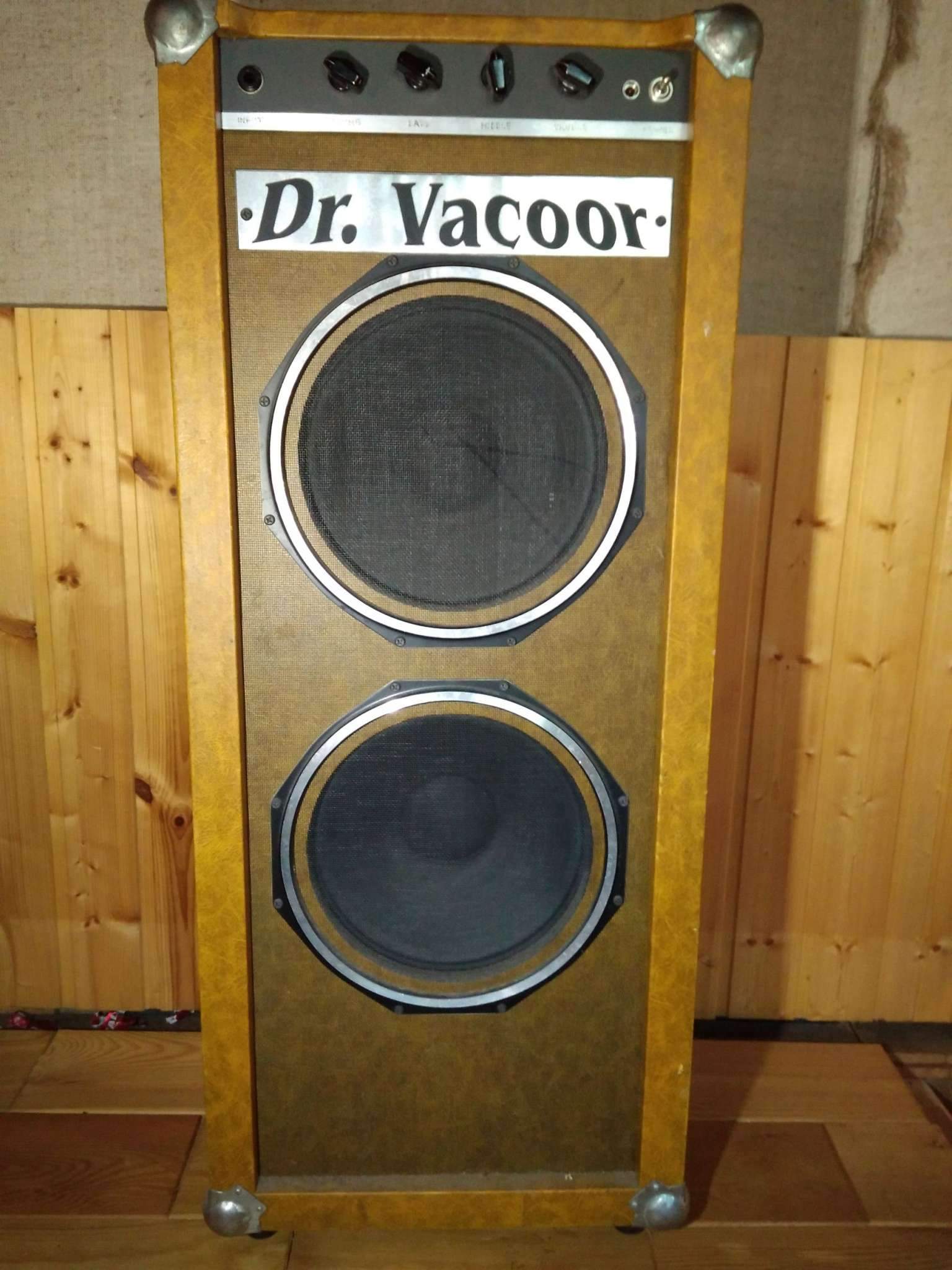 Комбик был сделан в 90-е годы. С тех пор прекрасно работает, сменив двух владельцев. Имеет один канал потрясающего чистейшего звука с широкой и чувствительной регулировкой тембров. Громкости вполне хватает для игры с барабанами. Динамики 10" Celestion от Marshall 80-х годов, Made In England.
