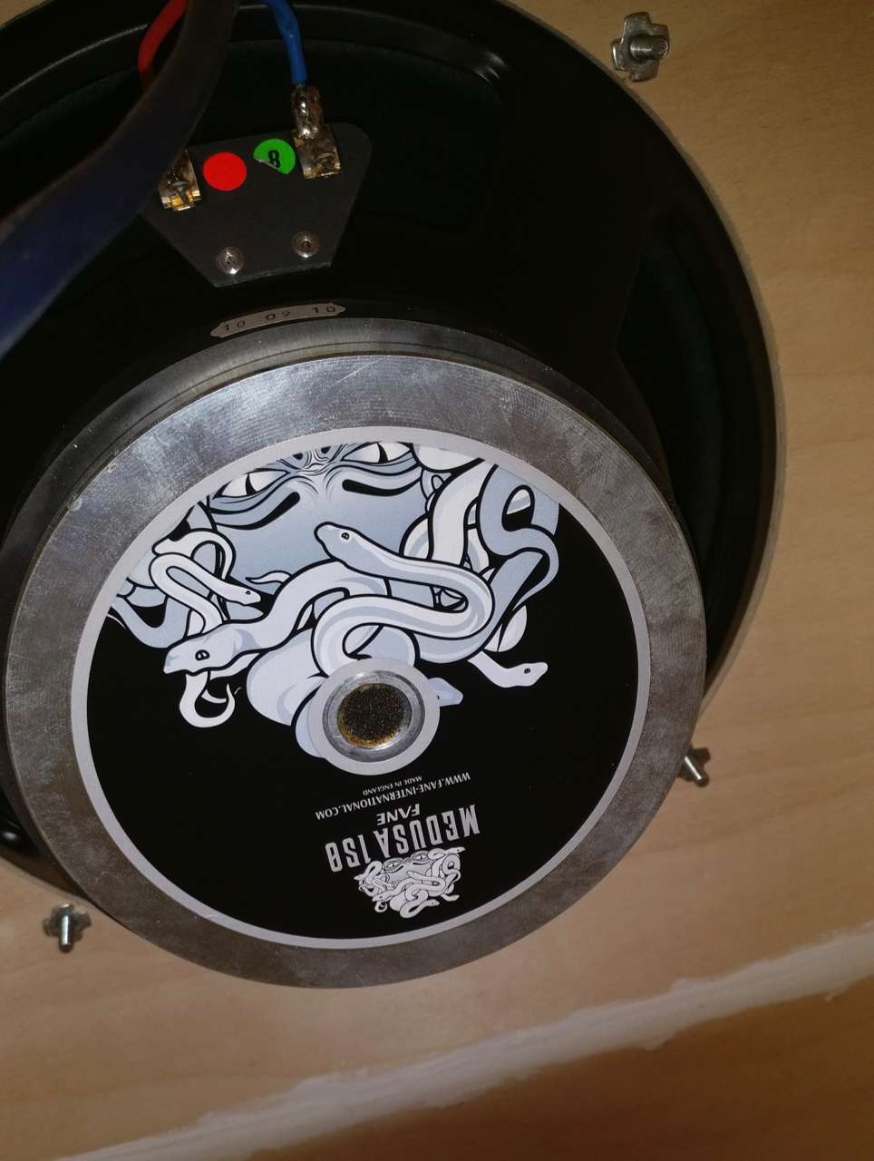 Кабинет выполнен из влагостойкой, высококачественной 15 мм фанеры, имеет закрытую конструкцию. На борту легендарный 12 дюймовый динамик Fane Medusa 150W 8Ohm. Разводка выполнена кабелем VAN DAMME Blue Series Studio.