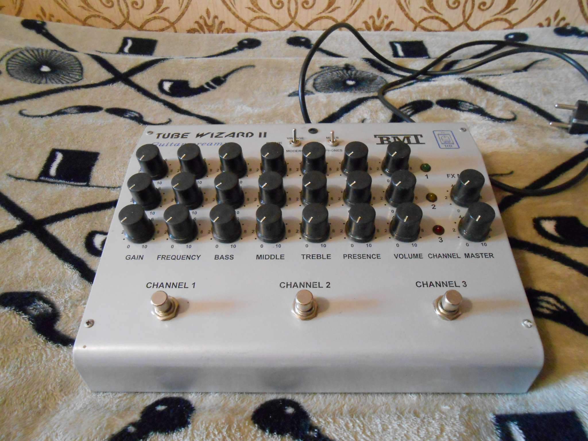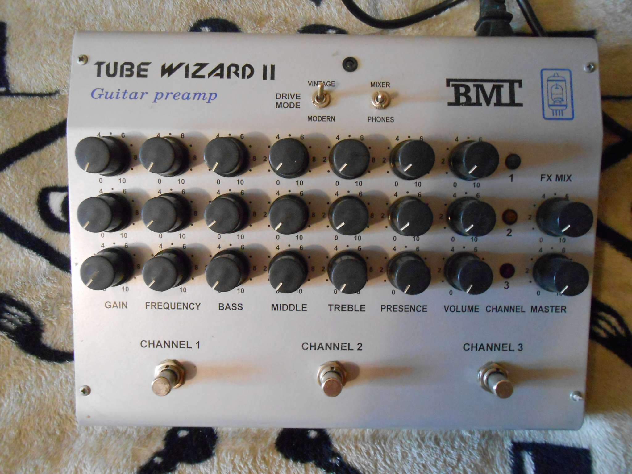 Полностью ламповый трёх канальный гитарный ламповый преамп за копейки!!! Три канала чистый, кранч, и хайгейн, каждый с со своей кнопкой включения, отдельным эквалайзером, регулятором громкости и гейна. Петля эффектов с регулятором микса, и мастер громкость. Переключатель vintage/modern. Выход на микшер и наушники. Питается прямо от сети. Очень редкий функционал полностью лампового преампа и практически один из единичных приборов, где каждый канал включается своей независимой кнопкой. Может всё от джаза до метала. В отличном состоянии.