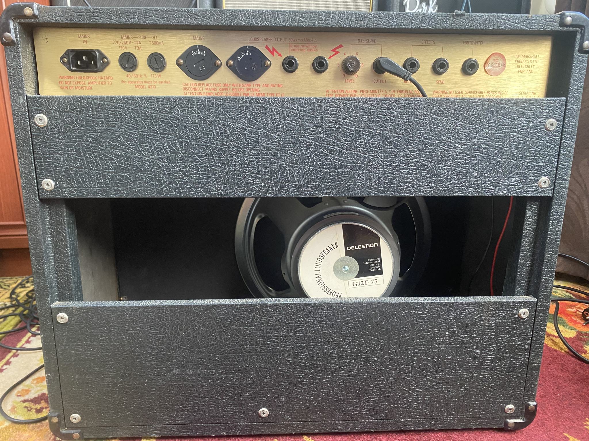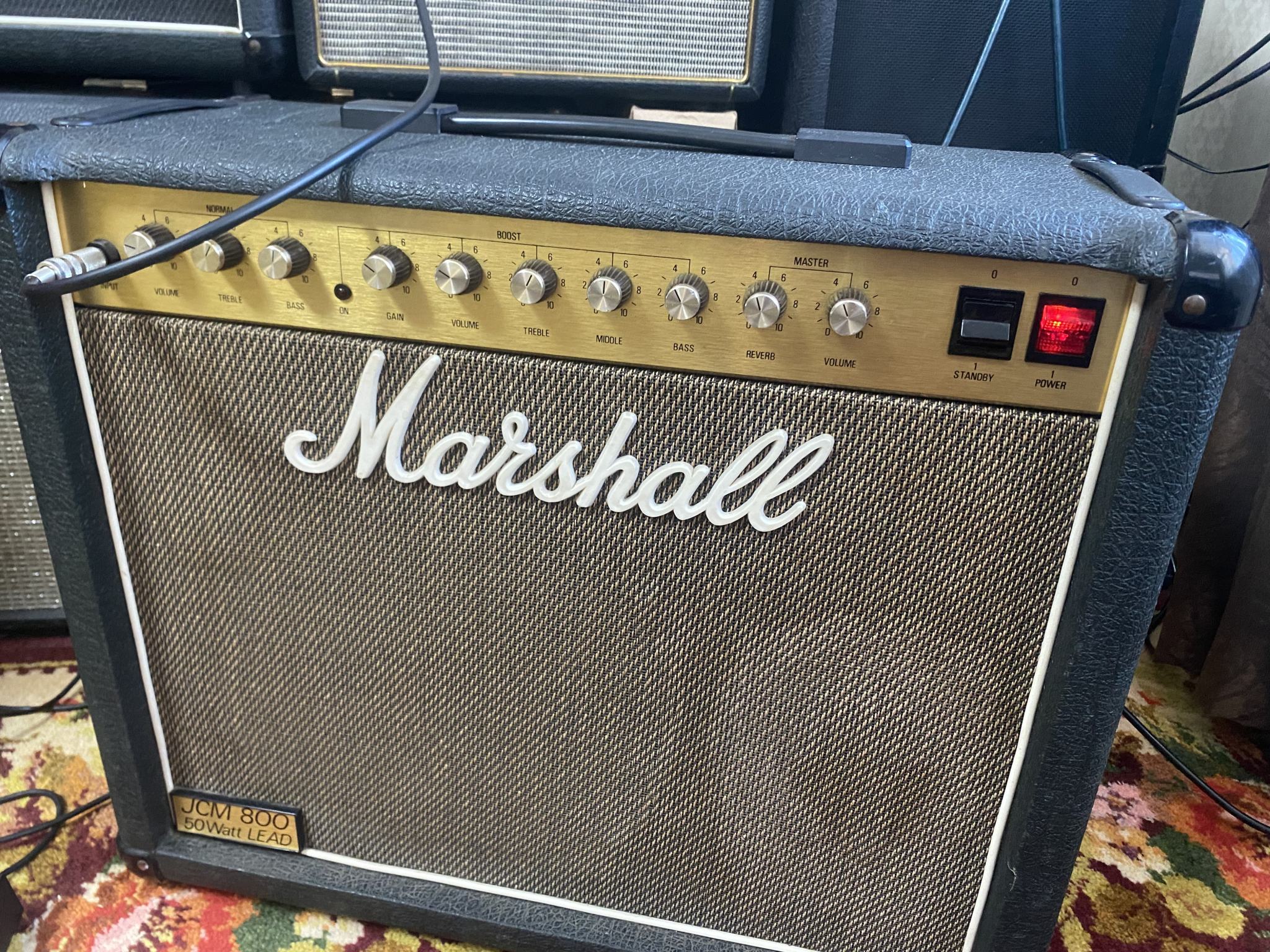 Продам ещё один очень классный, редкий, винтажный комбоусилитель Marshall JCM 800 Combo 4210 (2205), Англия, 1985 год, 50Вт, встроенный ревер, Мастер громкость. Аппарат в отличном состоянии, всё в стоке, без модов, в преде установлены новые лампы Electro-Harmonix, в усилителе две отобранные EL-34 Mesa Boogie. Всё по классике: звук - эталон, шикарный чистый - прозрачный и упругий, перегруз - просто зверюга, красивая и яростная зверюга, которая не даёт выпускать гитару из рук. Ревер глубокий и красивый, никакого ухающего гула, всё чётко и прозрачно. В комплекте футсвич. Пересыл сдеком без проблем. Цена - 100000руб.
