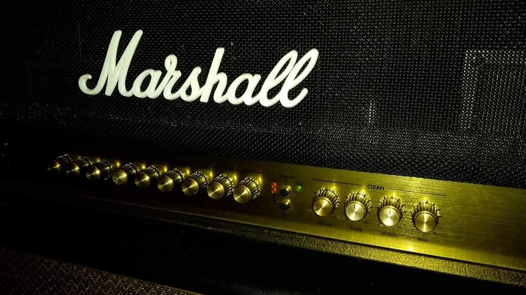 Ламповый гитарный полустек на базе усилителя Marshall MA100 с кабинетом Wharfedale 4х12.