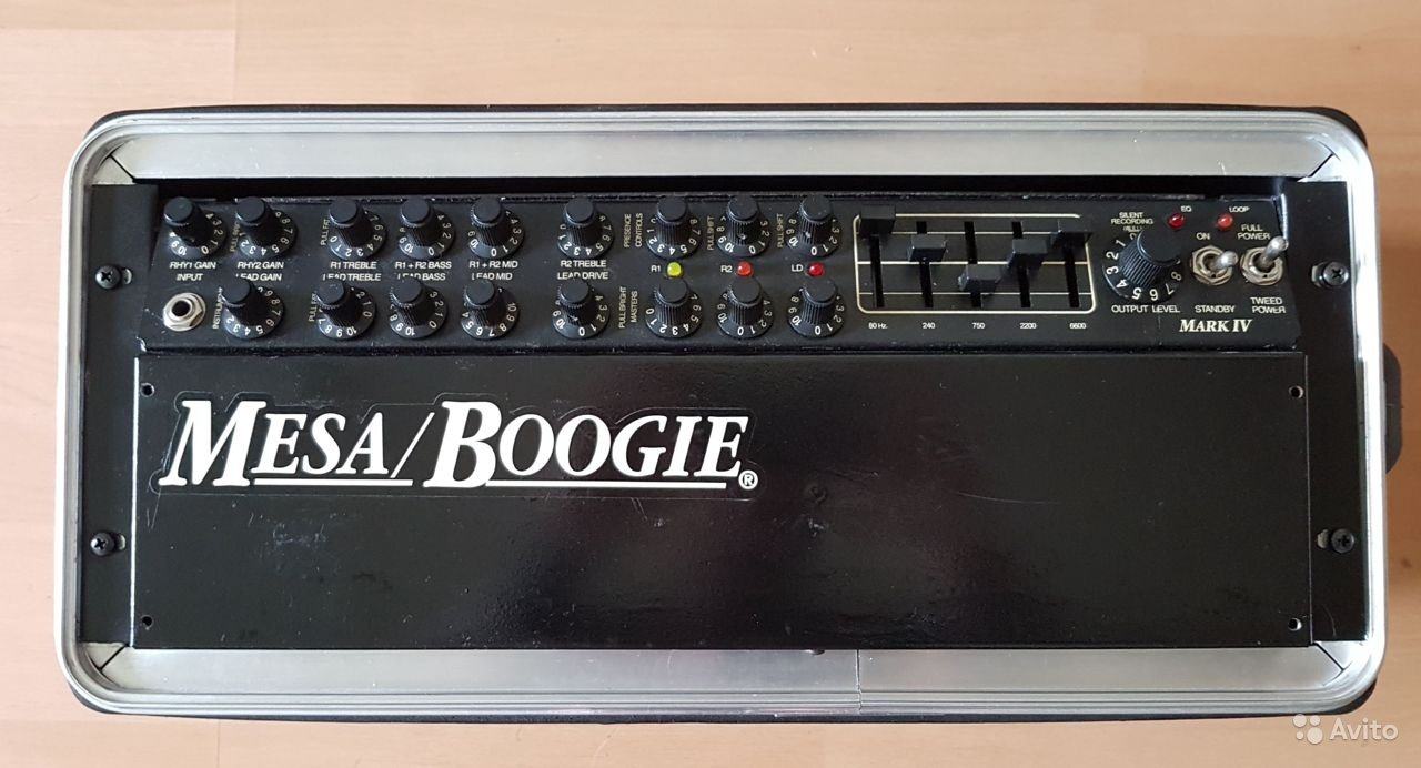 Mesa Boogie Mark IV.Рэковый вариант,ревизия В.В хорошем для своего возраста состоянии. Проверку и профилактику делал AZG, через него же и брал в Питере. Легенда рок-музыки! Компактный и чрезвычайно разносторонний по звучанию ламповый усилитель. Эту модель отличают три фирменных звука с индивидуальной регулировкой - Rhythm 1 (чистый звук), Rhythm 2 (промежуточный между чистым и слегка перегруженным) и Lead (перегруженный). Усилитель имеет традиционные пассивные обрезные фильтры низких, средних и высоких частот плюс регуляторы Presence, Gain, Master на каждый из трех каналов. Кроме того, предусмотрен 5-полосный отключаемый эквалайзер, кнопка подъема средних частот, регулятор громкости динамика на записи Silent Recording и переключатель мощности Tweed. .Лампы мощника 6L6-подобранная четвёрка. Износ ламп минимален. Домашний житель по репточкам и концертам не эксплуатировался. Вес вместе с рэком 18кг. Футсвич и переходный трансформатор в комплекте.