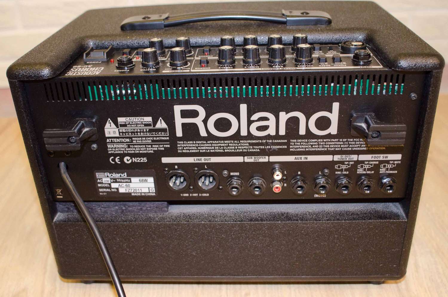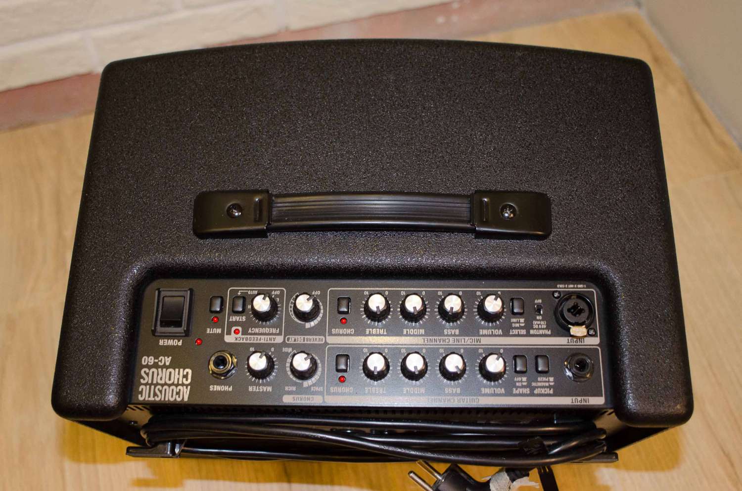 Продам комбоусилитель для акустических гитар Roland AC-60. Состояние отличное, использовал редко, дома на небольшой громкости. Всё работает. В комплекте чехол с ремнем. Покупал для любительской игры дома. По особенностям: два входа для инструментов, один вход можно использовать для микрофона, фантьмное питание. Кроме этого, есть дополнительные входы и выходы и выход на наушники (удобно дома в тишине музицировать). Из эффектов - реверберация, хорус, дилей, подавление обратной связи.