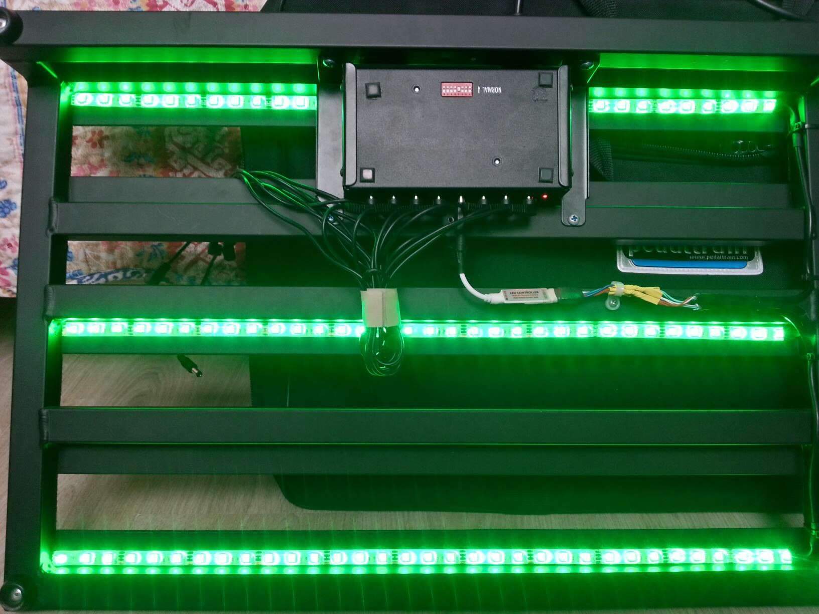 В комплекте крепление для адаптера и очень крутая подсветка с разными режимами подсветки и цветами!