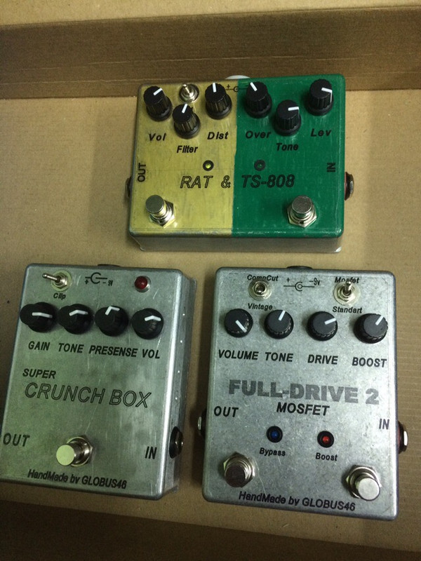 Всё в одном экземпляре. Хобби. Люблю паять. В педалбордах не стояли. Хороши для ознакомления со звуком перед покупкой фирменных. Если кого что заинтересует попрошу музыкантов записать, ибо сами они не играют, а я не передам того потенциала который в них заложен.
