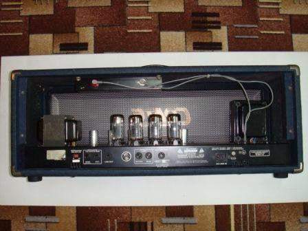– отдельно вынесены Presence регулировка на оба канала и REVERB (ревербератор пружинный) на первый и второй канал, также на передней панели расположены кнопки включения последовательного посыла-возврата внешней петли эффектов и ступенчатого ослабления его номинальной чувствительности на 12 дБ, кнопки выключения питания и анодного напряжения.