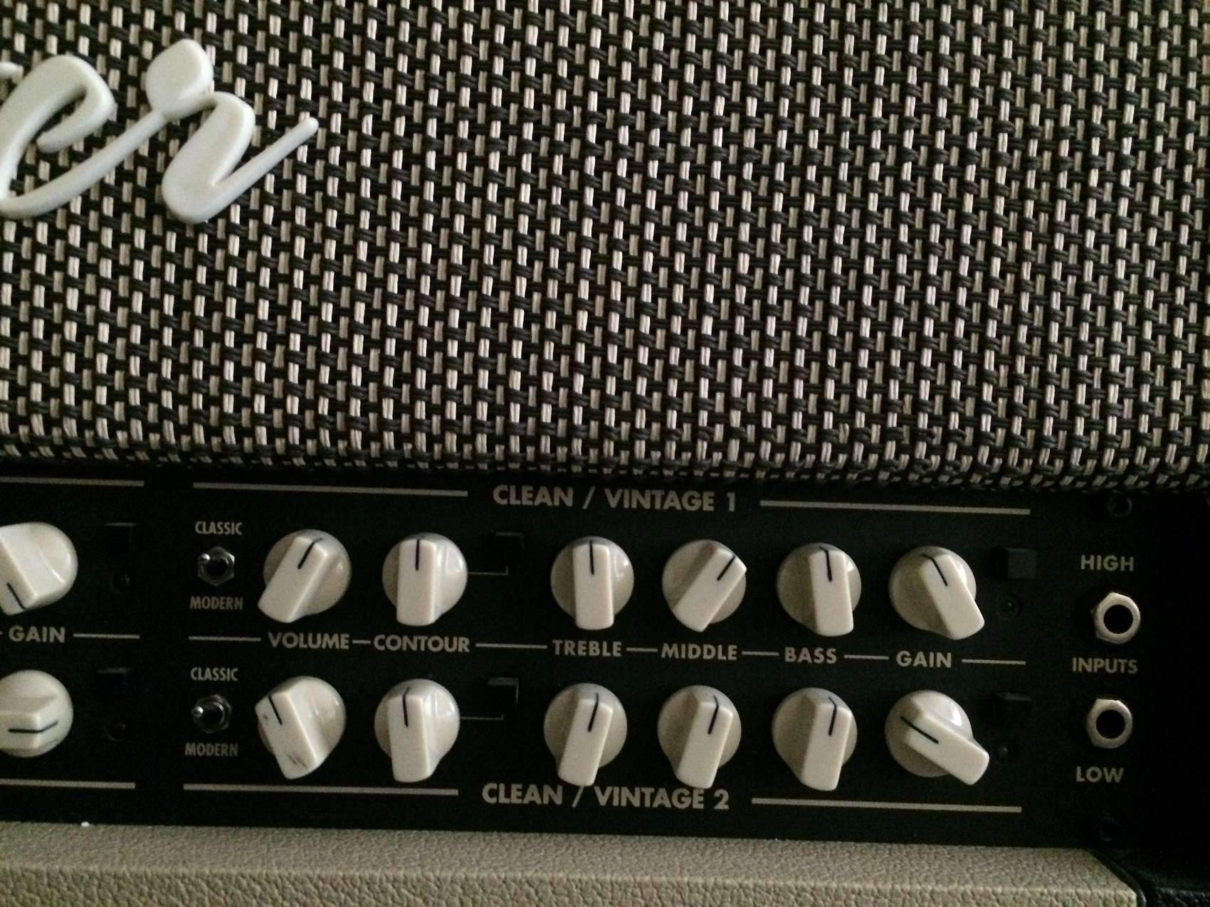 Clean/Vintage 1: Самый чистый из четырех каналов. Полный комплект различного классического чистого звучания. От яркого и искрящегося в режиме MODERN, до мощного в стиле Marshall JTM в режиме CLASSIC. Нажмите кнопку, активирующую ручку CONTOUR и вы получите чистейший, почти акустический звук, довольно редко встречающийся в ламповых усилителях.