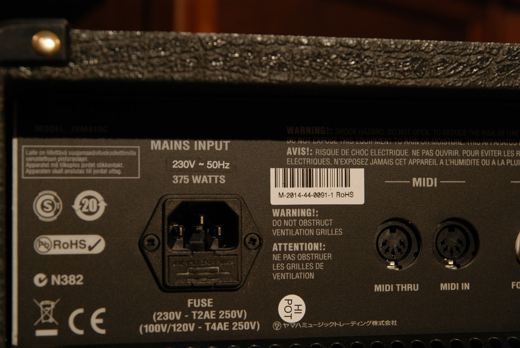 Модель JVM410 имеет две петли эффектов с регулятором уровня микса и громкости. Если комбинировать JVM410 с MIDI-процессором, можно значительно расширить возможности усилителя.