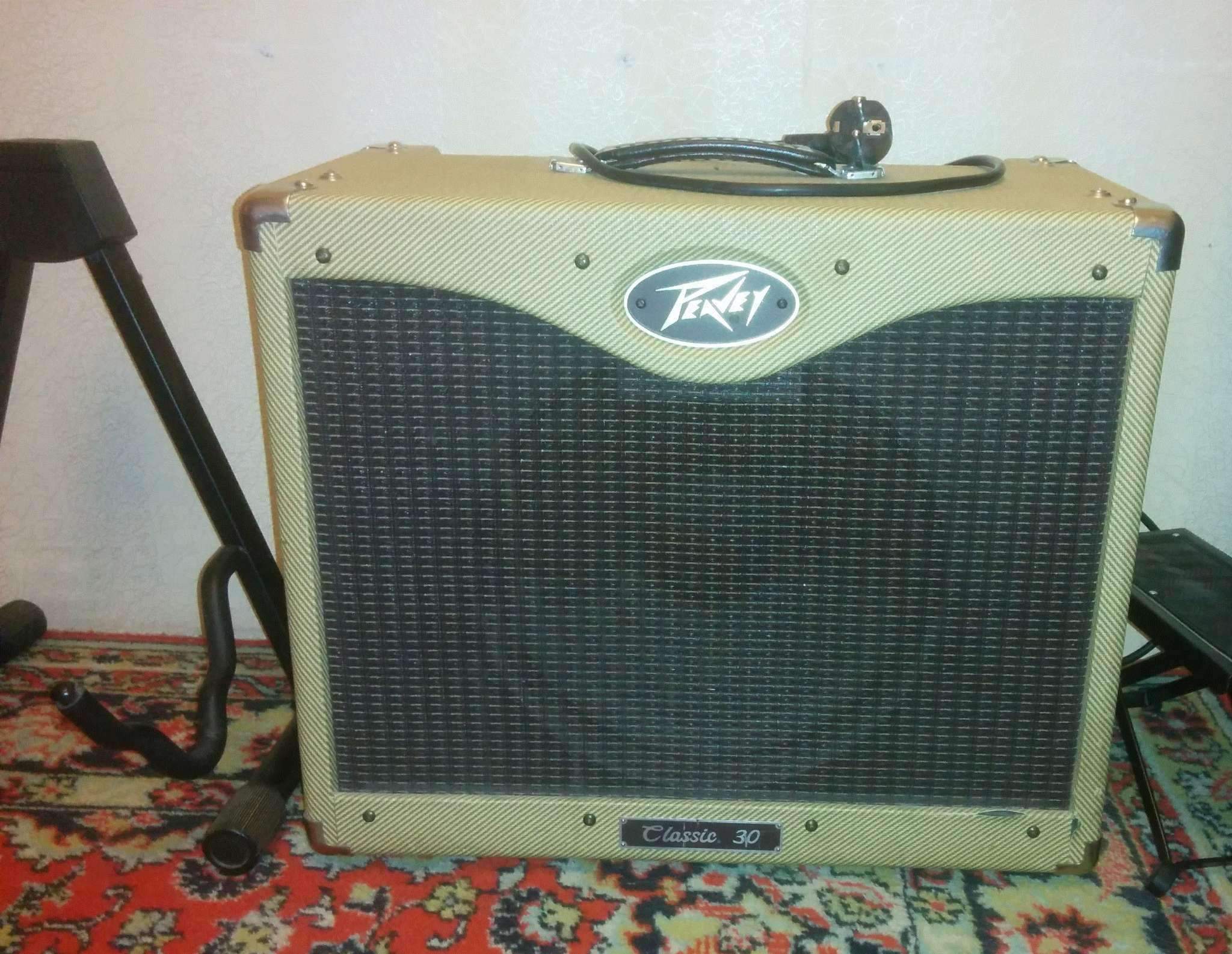 Peavey classic 30, внешне состояние хорошее, на большой громкости появляется шум, скорее всего нужно менять лампы, был в ремонте, было что то с блоком питания, сейчас полностью работает, в подарок Микрофон sennheiser e606. 27 000 Киров, пересыл
