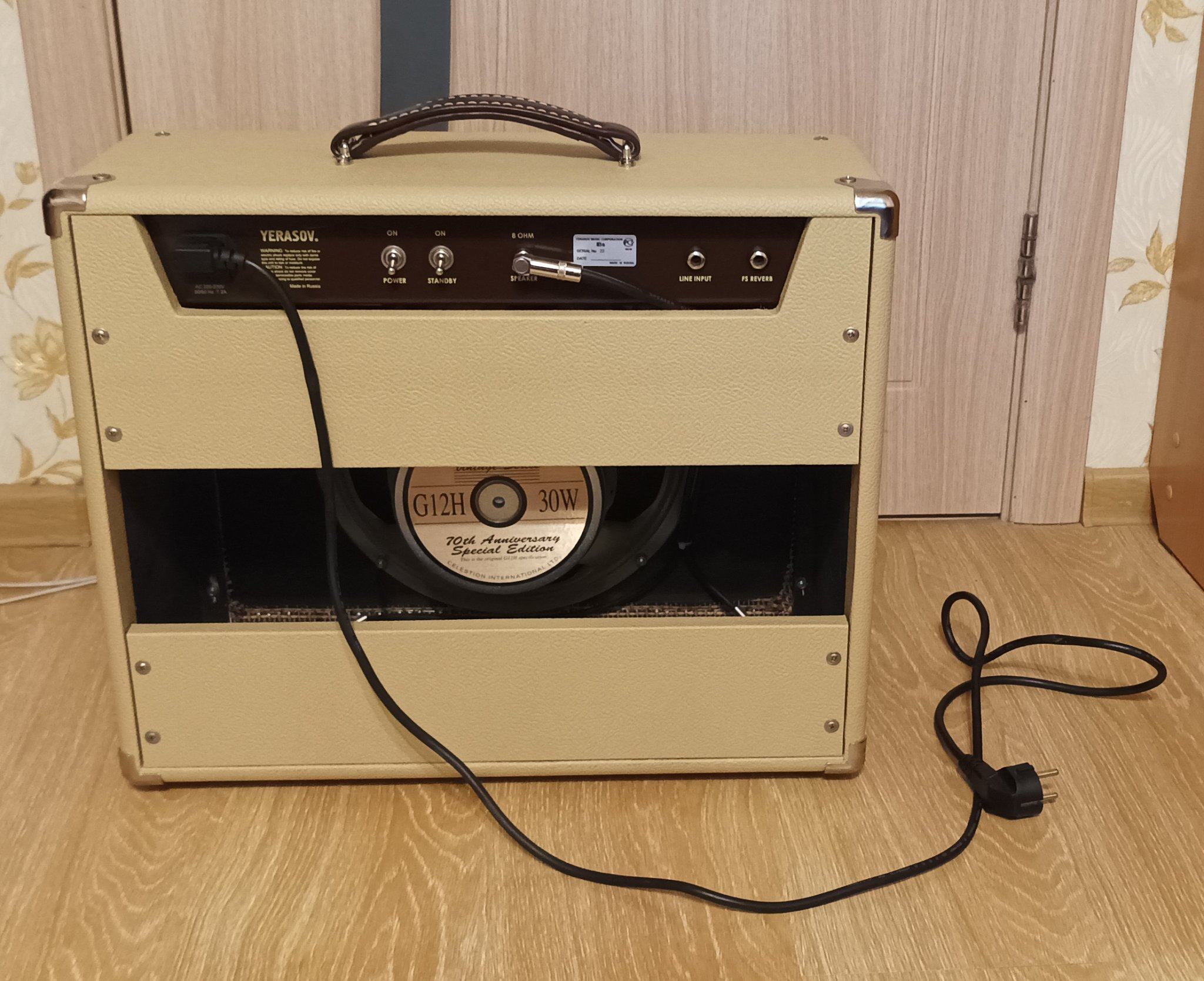 В усилителе использованы трансформаторы и дроссель американской фирмы Classic Tone и английский динамик фирмы Celestion G12H Anniversary