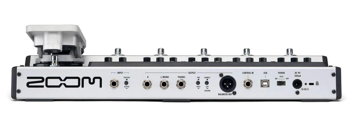 Как уже говорилось, ZOOM G5 имеет четыре больших дисплея, и к каждому дисплею закреплены по три ручки управления и переключатели. Такое сочетание интерфейса, позволяет использовать одновременно до девяти педальных эффектов и усилителей. Удобное расположение этих ручек управление, делает пользование процессором очень простым и интуитивно понятным даже для новичков.