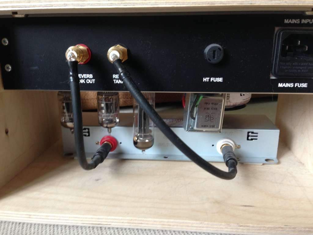 Аутентичный спринг реверб по схеме 6G15, в отличии от оригинала гораздо более мобилен за счет габаритов (используется короткий танк Accutronics 8AB2A1B). Лампы 1x12at7 1x12ax7 1xEL844. Монтаж Point-to-Point, кондеры Mallory и Jupiter. Звучит потрясающе, не одна эмуляция в виде педалей не сравнится по живости и обьему! Рекомендую! (Лично сравнивал с популярной педалью BOSS FRV-1 '63 Reverb Pedal, дык она рядом не стояла, пластмасса..)
