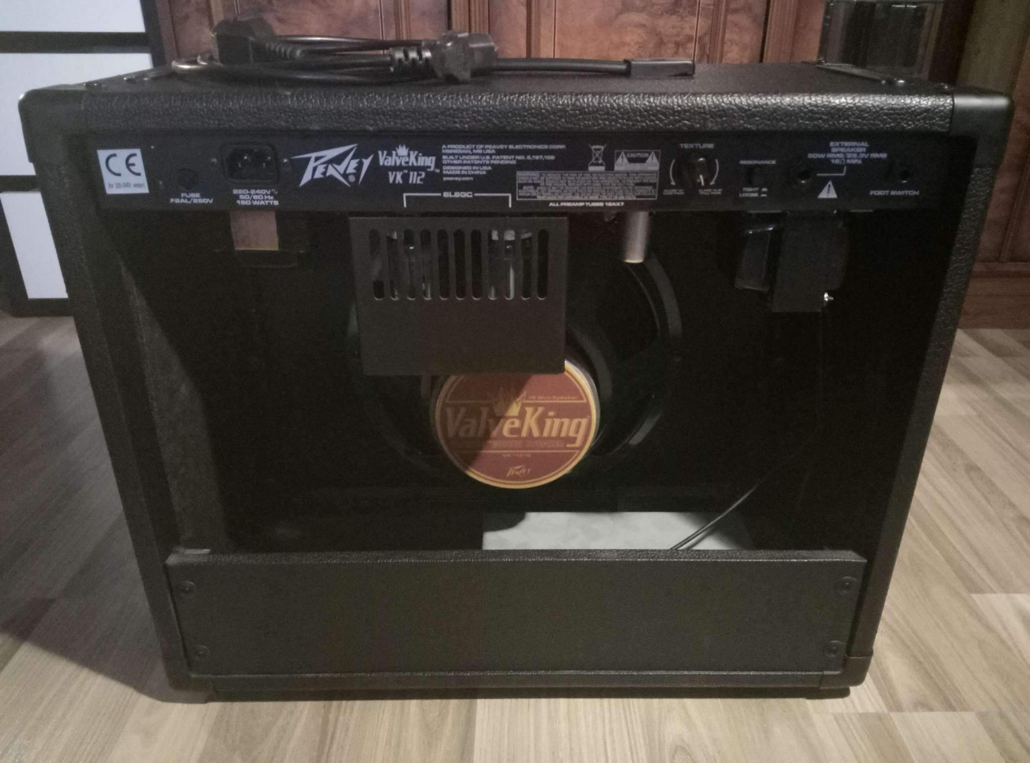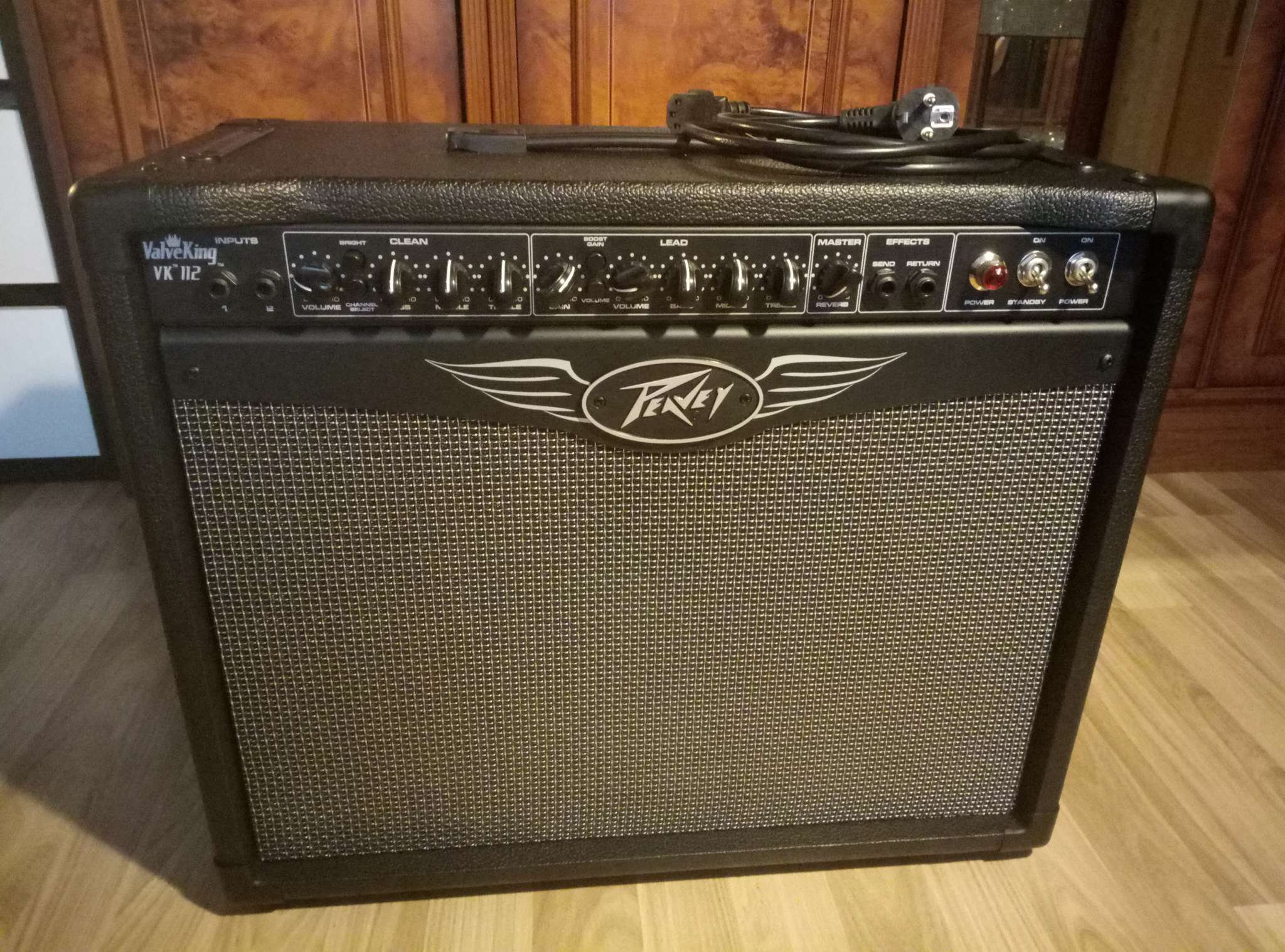Peavey: Valveking 112. Это двухканальный, полностью ламповый, 50ти ватный комбоусилитель с 12ти дюймовым динамиком, петлёй эффектов, пружинной реверберацией и запатентованной технологией Textures, которая позволяет менять режим усилителя с класса А до класса А/В. Комбик у меня достаточно давно, но пользовался я им не много, так что находится он в очень хорошем состоянии. Есть небольшие потертости на корпусе, но они не бросаются в глаза. Для более хорошего ознакомления с данным девайсом, можете почитать отзывы