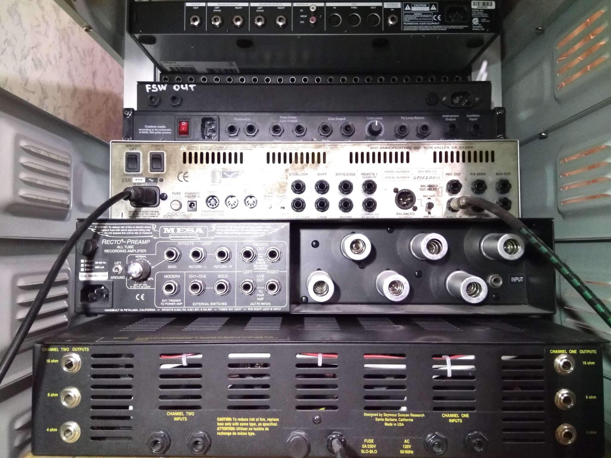 Любителям преампов посвящается (axe, kemper сюда же). Усилители в формате головы, не смотря на наличие петли, плохо совместимы с преампами, по сравнению с оконечниками, которые были специально для этого созданы, об этом у нас знают далеко не все, но профессионалы всегда были в курсе. В 80-90гг все известные играли и записывались на преампах с рэковыми оконечниками, итог - качественный звук на всех записях тех времён! Чем же оконечник лучше для преампа (axe, kemper и т.д.)- у головы бывают разные петли и даже с буфером на лампе, но это не спасает ситуацию, а только больше замыливает звук, а всё потому, что (send/return) предназначен для подключения эффектов обработки звука. Не веришь? - прочитай и переведи с вражьего, что написано около гнезда -fx loop (effects loop). Так что не думай, что если ты воткнул в ретурн бошки преамп, ты получишь тот самый звук, который был задуман производителем, отсюда и все мнения, что преамп нормально звучать не может. Если понял о чём здесь речь, то у меня для тебя есть офигенно редкий (всего пару-тройку можно найти в России, их серия была лимитированной) бутиковый рэковый оконечный стерео усилитель для гитары made in usa на лампах kt88 от известнейшего производителя Seymour Duncan ktg-2100. Итак чем же он так крут, ну хотя бы тем, что он создавался как убийца лучшего усилителя всех времён и народов vht 2/90/2, замечателен он тем, что не окрашевает излишне сигнал (для многих modern преампов, axe, kemper это необходимо четкость и читаемость на высоте), и да он разумеется лучше: engl e840/e850, mesa 2:90, marshall 9100, peavey 50/50 и др. Большой плюс, что он стерео, а значит два гитариста будут удовлетворены одновременно, либо один будет играть в стерео, а это дико круто по звуку выходит. Ночью в квартире на нём реально тихонечко играть, при этом слыша все ноты, ну и на максимум 100Вт на каждый канал. Он очень экономичный: всего две выходных ламы kt88 на канал (у других 100-ваток их 4), каналы включаются по отдельности, так что можно пользоваться и одним, если пока нет нужды в стерео. Сделан рефрешинг: заменены электролиты на японские, увеличена ёмкость конденсаторов в трое. На реле организован soft start. По питанию установлены карбидокремниевые выпрямительные диоды. Сигнальные провода заменены на mogami. Потенциометры не хрустят, не смазывали- просто качественные. Вентилятор обслужен и не шумит. Остальное тоже в полном порядке. Лампы свежие: в одном канале kt88, в другом 6550, установлены для небольшой разницы в звуке. Высота 2u. Питание 220В. Выходы на кабинеты 4,8,16 Ом. Применяемые в усилителе лампы: kt88(6550)- 2шт в канал, всего 4шт; 12ax7(ecc83)- 1шт, 12au7(12at7)-1шт, всего 2 тех и 2 тех. Аппарат не молодой, 93 года, но в идеальном техническом состоянии, в те времена все конкурировали за звук и старались предложить гитаристу лучшее- самый труъ!