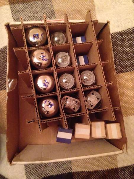 Лампы два комплекта есть и 6Л6 и ЕЛ 34. Хотите такие, хотите другие ставьте. Понижающий транс на 110В в комплекте. Футсвич тоже. Отошлю в любой город за Ваш счет.