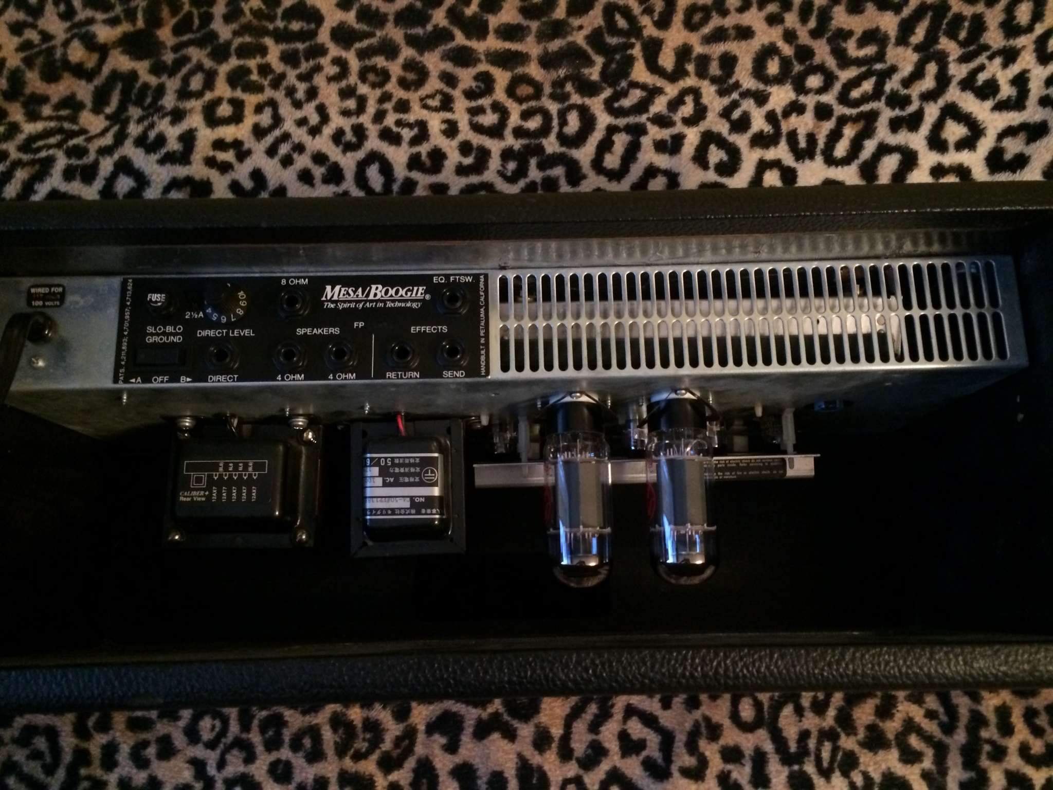 Лампы 2х6L6 в секции усилителя, 4х12АХ7 в предусилителе, 1х12AY7 лампа ревера (ревербератор пружинный).