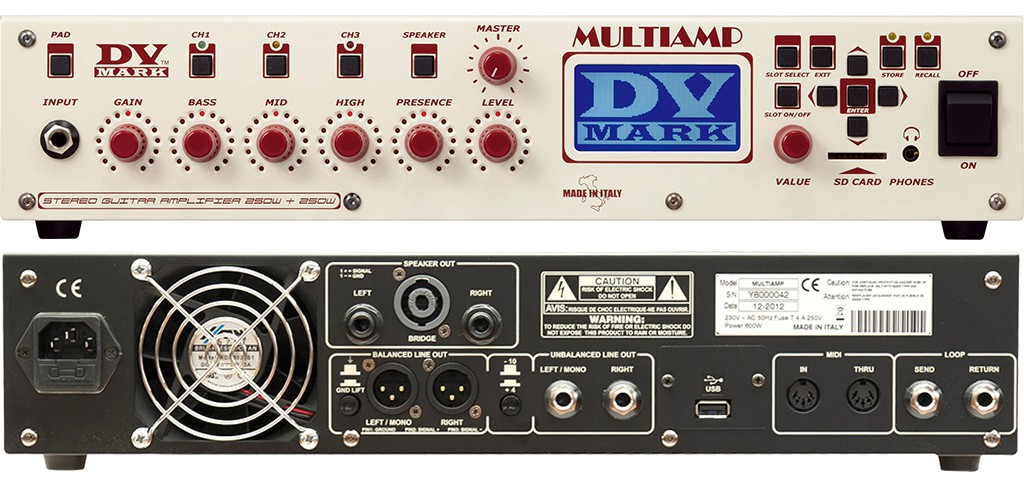 DV MARK MULTIAMP - 3-х канальный гитарный процессор со встроенным усилителем 150+150Вт@8 Ом/ 250Вт+250Вт@4 Ом / 500Вт@8 Ом (bridge), виртуальные усилители и кабинеты, студийные эффекты; с миди-портами.