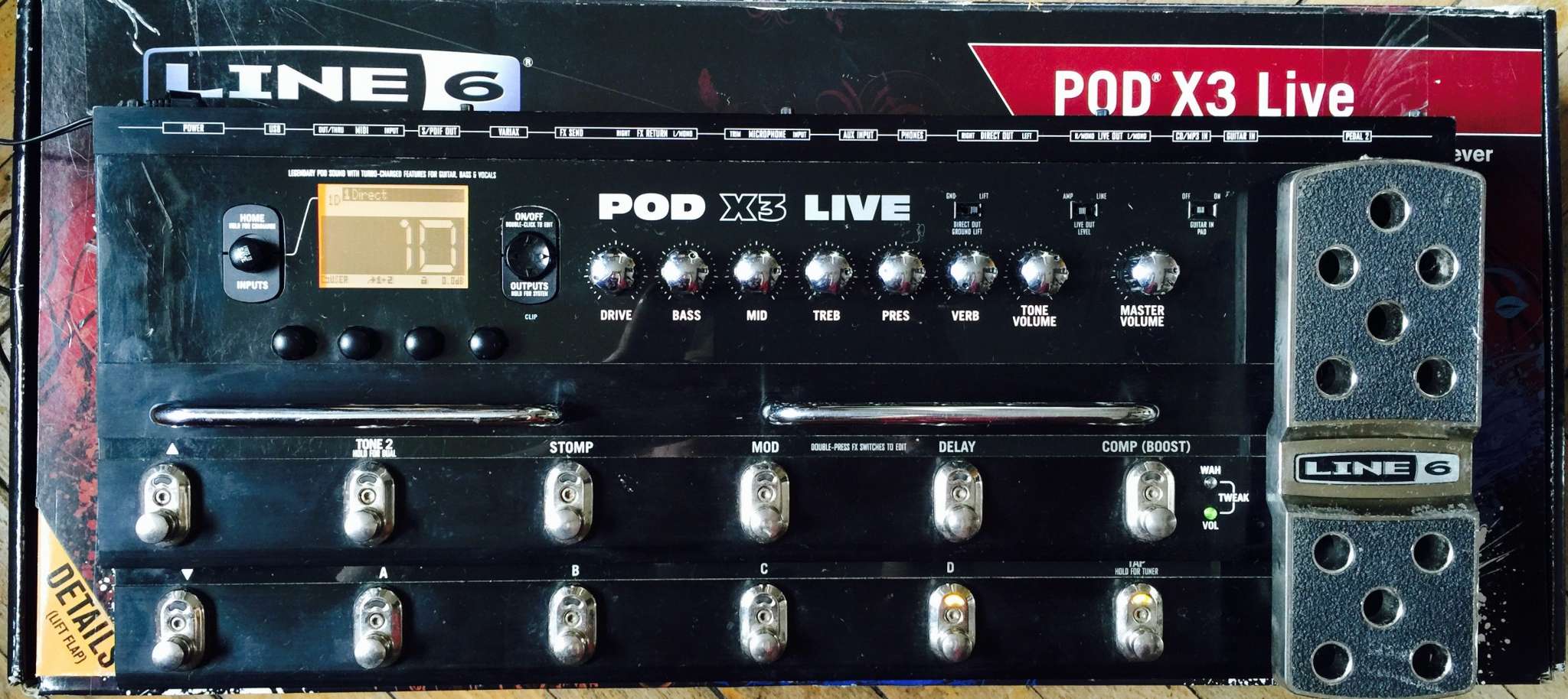 напольный процессор Line 6 POD X3 Live. Состояние как на фотке. Состояние хорошее, девайс полностью рабочий. На задней панели есть следы от скотча. В комплекте девайс, БП, коробка.