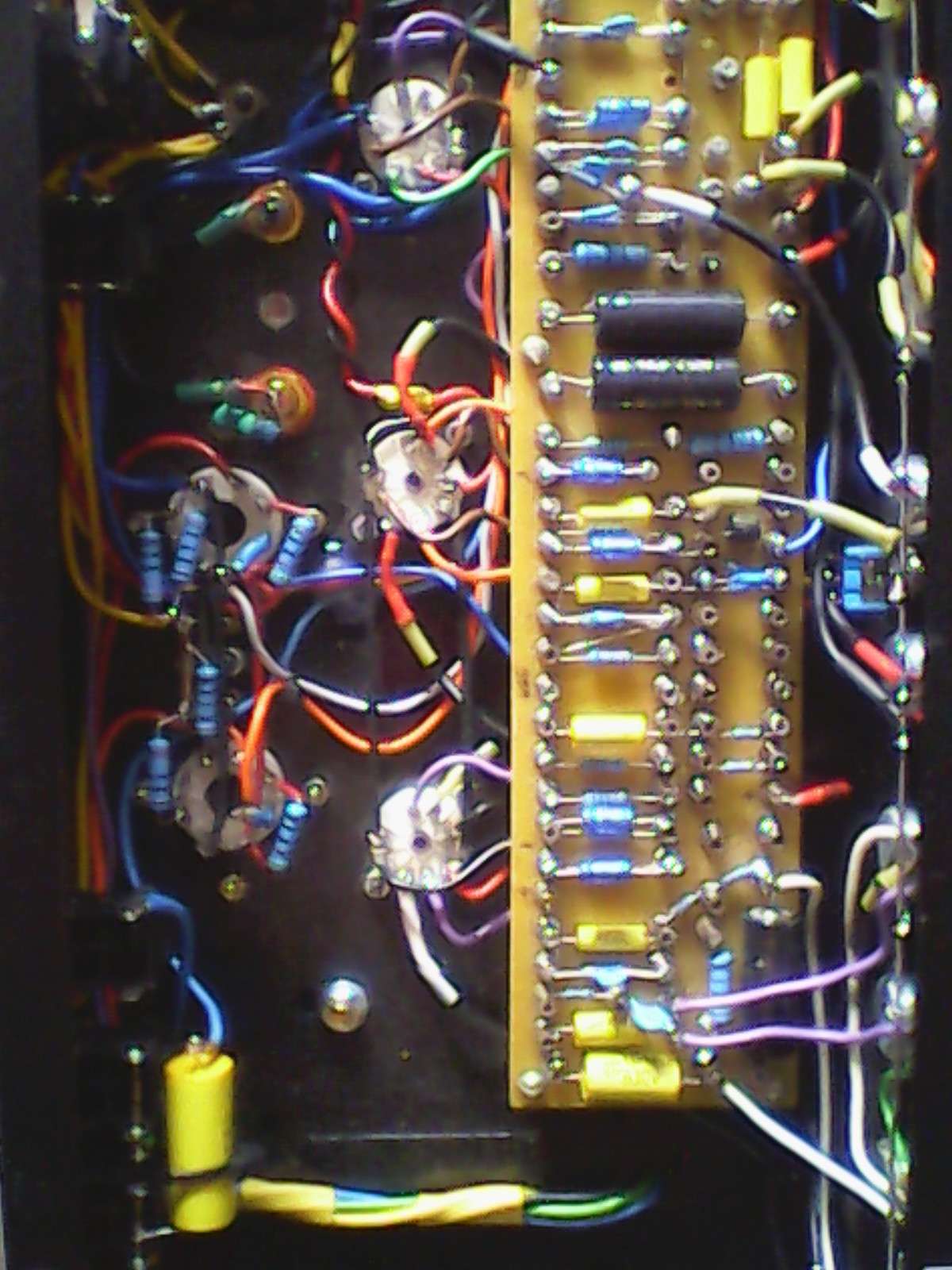 Сборка навесным монтажом,серьёзные трансформаторы,комплектуха вся фирменная.Сделан идеально.Звучит круто очень универсален по звуку.Чистый фендер,ну очень чистый играть кайфово.Перегруз-два режима кранч и лид,всё выведено на миниатюрный футсвич.Петля как у Фридмана-всеядная.Пружинный ревер отличный.Перегруз отдельная песня-ну очень музыкальный не оторваться.Играется всё от медленных тягучих соло в стиле Мура и Сантаны до мощных рифов в стиле хард-рок.С пониженными строями дружит.Звук очень плотный, есть ручка Depth которая собирает низ в мощный кулак.
