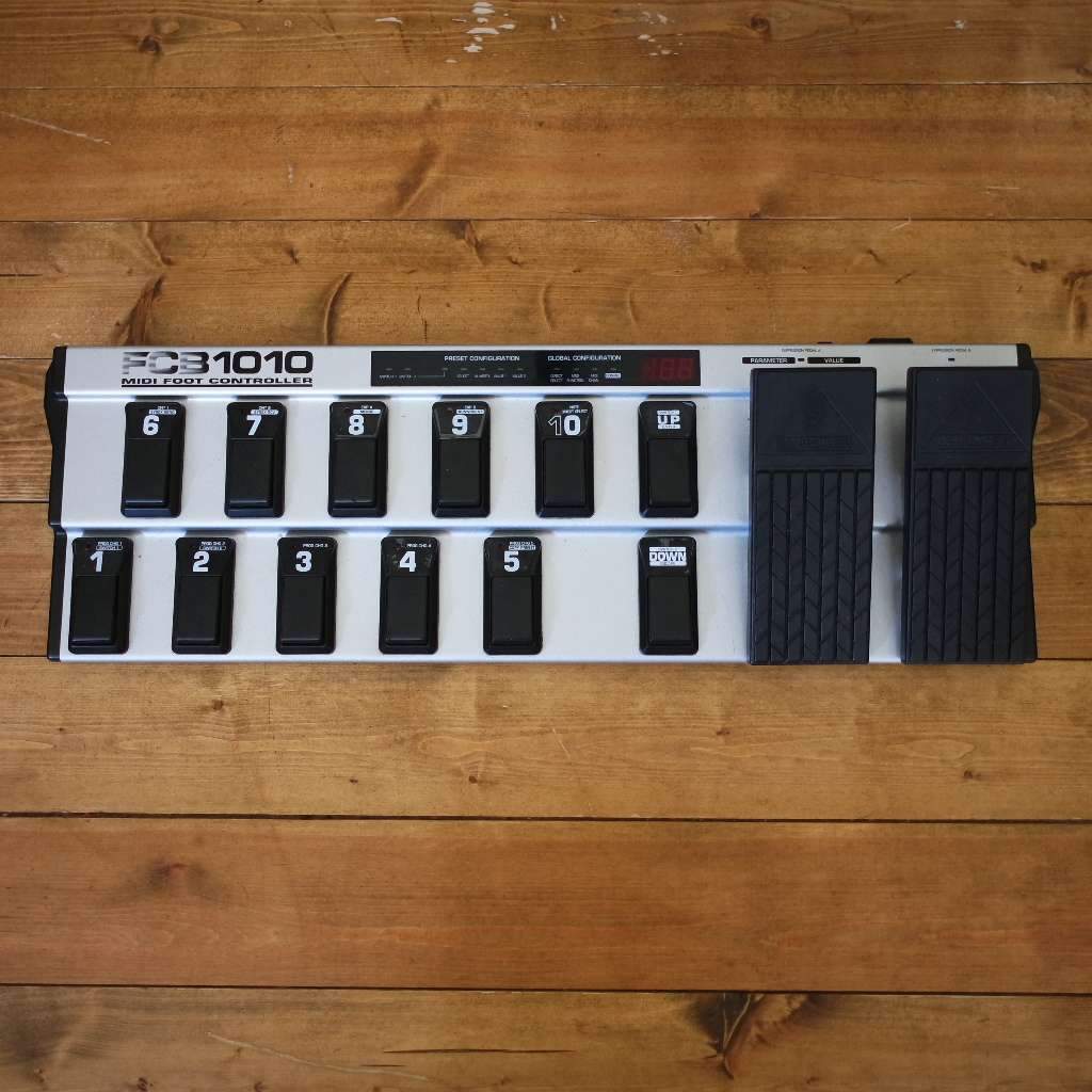 Behringer FCB1010 - напольный программируемый мультизадачный контроллер, управляемый с помощью ног. Устройство имеет 10 ножных переключателей, служащих для выбора пресетов, программирования/ввода данных, пару навигационных переключателей "Up" и "Down", а также две педали экспрессии, служащие для передачи команд непрерывного изменения параметров/ввода данных при программировании.