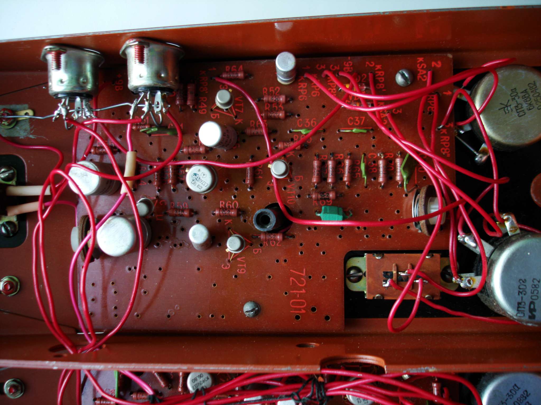 Теперь о звуке: фазера/вибрато с вращением звука в пространстве я не услышал, получился только овердрайв, эффект эхо малозаметен, похоже электролиты подсохли, следует поменять. А вот дисторшн работает хорошо, такой липучий и читаемый, с средним зерном.