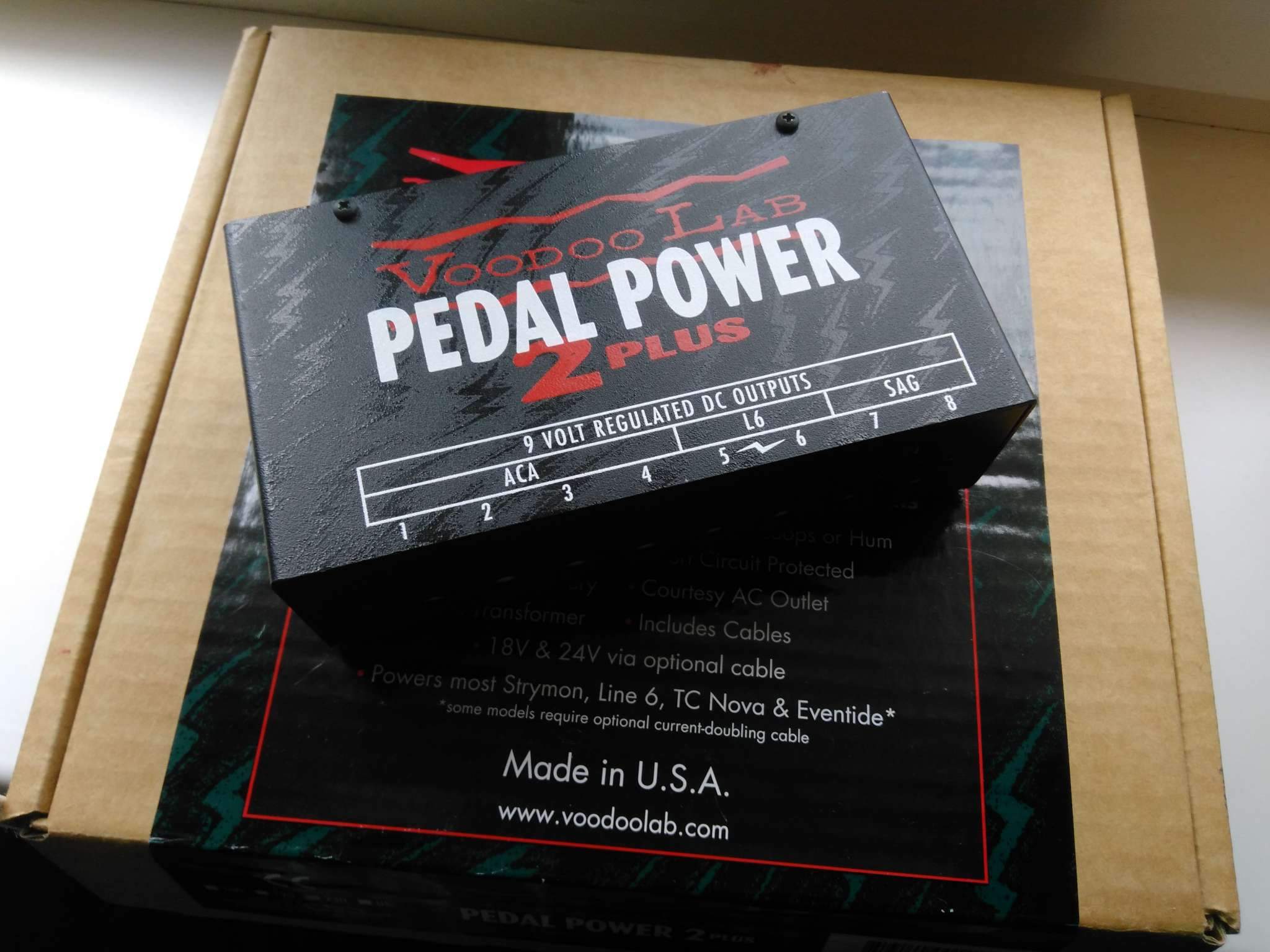 Эти два выхода дают ток мощностью 250мA, для того что бы вы могли запитать от них приборы с высоким потреблением. Такие как например Boss DD-20 Giga Delay или Line 6 DL4 Delay Modeler. Благодаря переключателям снизу Pedal Power 2 Plus, для каждого из этих выходов может быть выбран стабилизированный (Boss Twin Pedals) и нестабилизированный (Line 6 Modelers) режим, что позволяет использовать оба этих эффекта сразу. Кроме этого оба входа могут быть использованы для питания обычных 9В педалей.