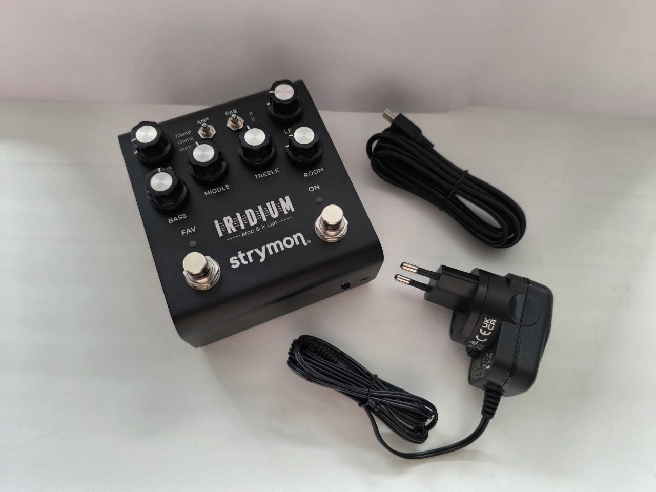 Strymon Iridium - эмулятор гитарных усилителей и кабинетов с поддержкой импульсов 24 бит/96кГц 500 мс – впервые в формате отдельного устройства. Matrix-моделирование трех усилителей: Fender Deluxe, Vox AC30TB, Marshall Plexi Super Lead. Доступ к четырём пресетам (плюс 3 пресета на кнопке FAV) с помощью Strymon Multiswitch, или к 300-м пресетам по MIDI. 9 встроенных IR кабинетов. Загрузка своих импульсов по USB через Strymon Implulse Manager.